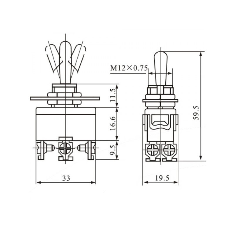 Chave Alavanca Inversora 3 Posições (On/Off/On) 6 Terminais Kn-1322 15A 220V 110V