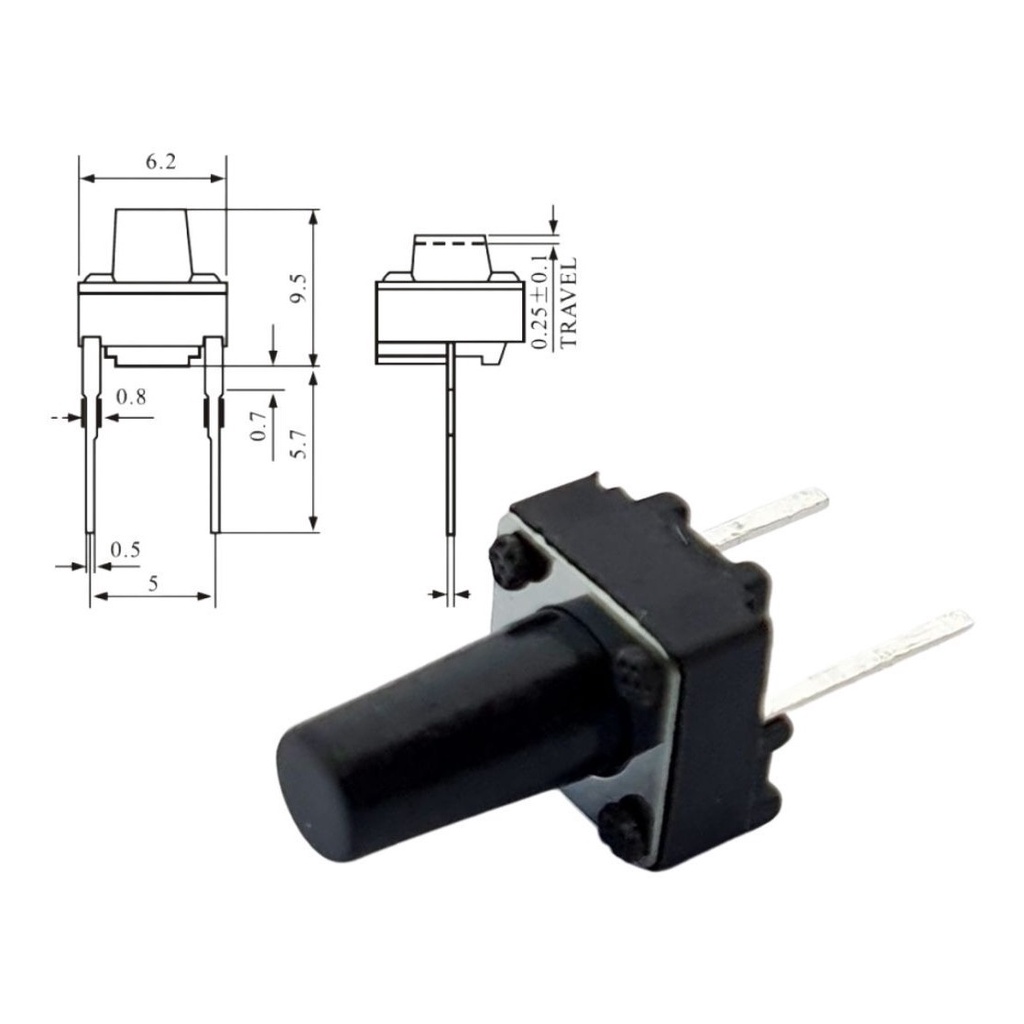 Micro Chave Tactil Push Button 6x6x9,5mm KFC-A06 - 10 Peças