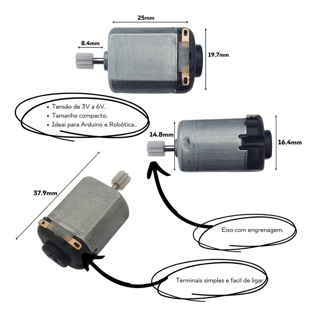 Mini Motor 130 Motorzinho Dc 3 A 6v Com Engrenagem para Robótica e Arduino