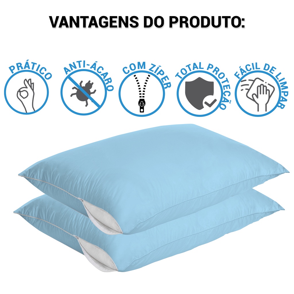 Kit 4 Capa Travesseiro Impermeável Azul 50cm x 70cm Com Zíper e HipoAlergênico