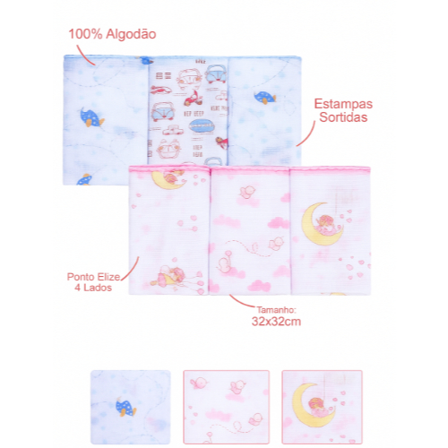 Pano de Boca Babete Papi Kit Com 3 Peças Estampada Unissex