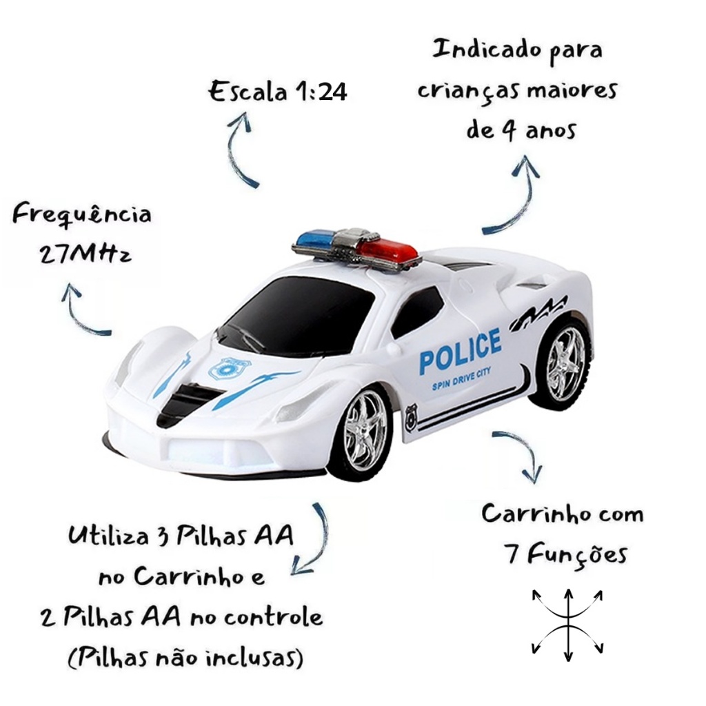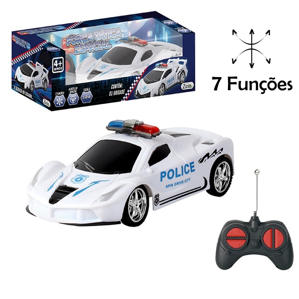 Carrinho de Controle Remoto Polícia 7 Funções Esportivo Brinquedo Escala 1:24