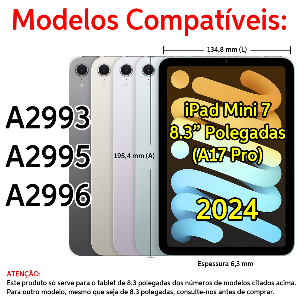 Capa Giratória 360 + Película Vidro pra Tablet iPad Mini 7 A17 Pro 8.3 Polegadas Modelos A2993 A2995