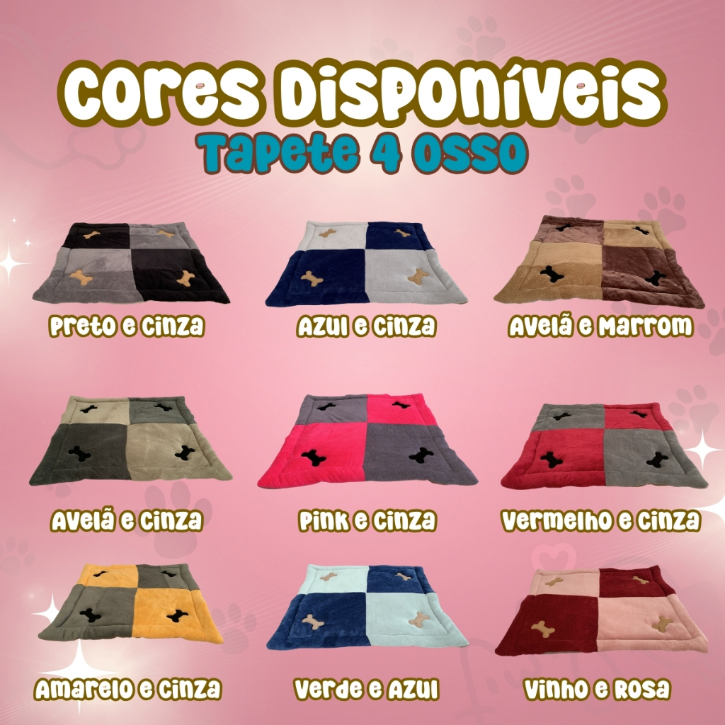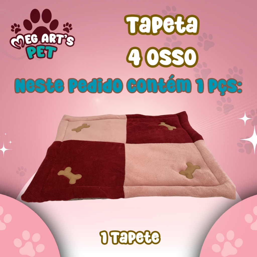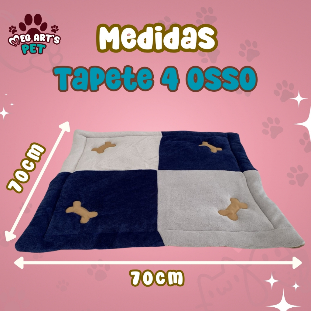 Colchonete Quadrad 70x70cm Tapete Pet De Inverno/Verão Para Cachorro e Gato Com 4 Osso Bordado