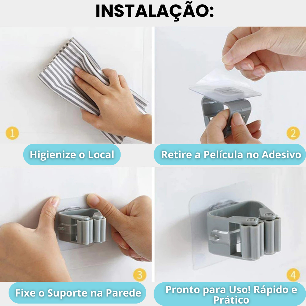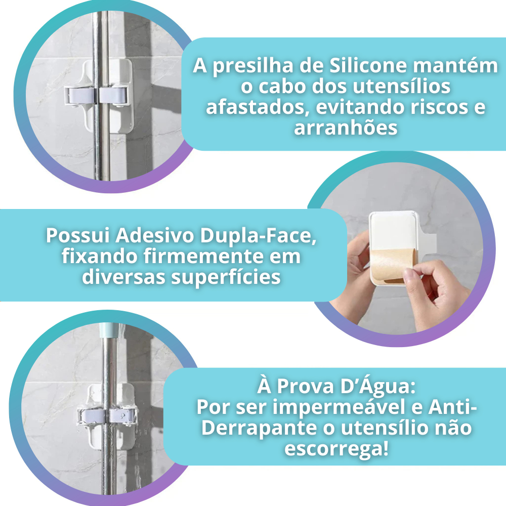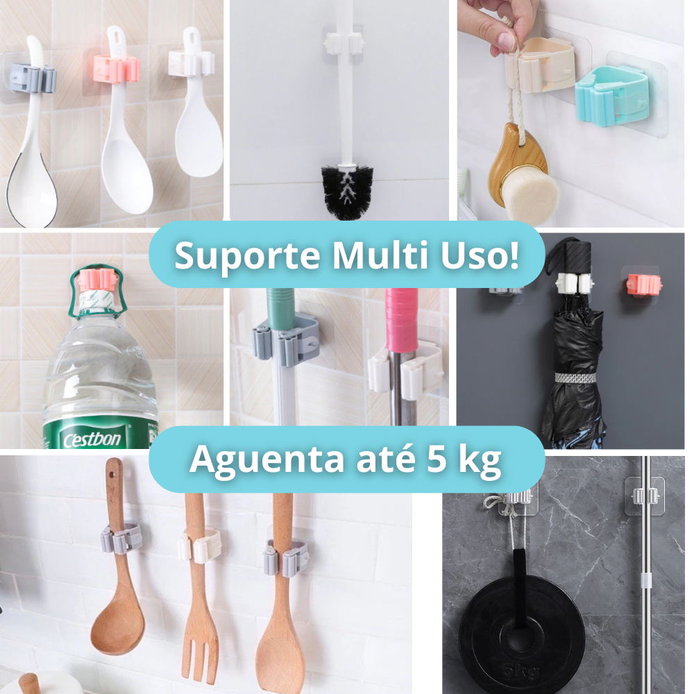 Suporte Organizador de Vassoura Rodo Parede Cozinha Adesivo Gancho