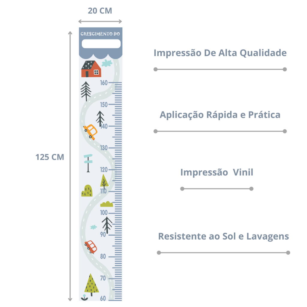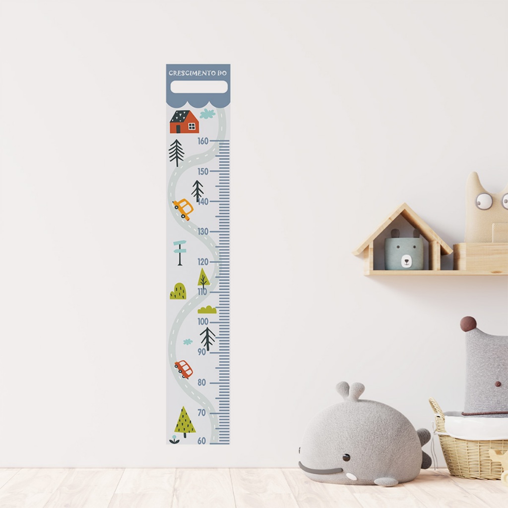 Régua De Medir Crescimento Infantil Adesivo Parede Quarto Menino Carrinhos