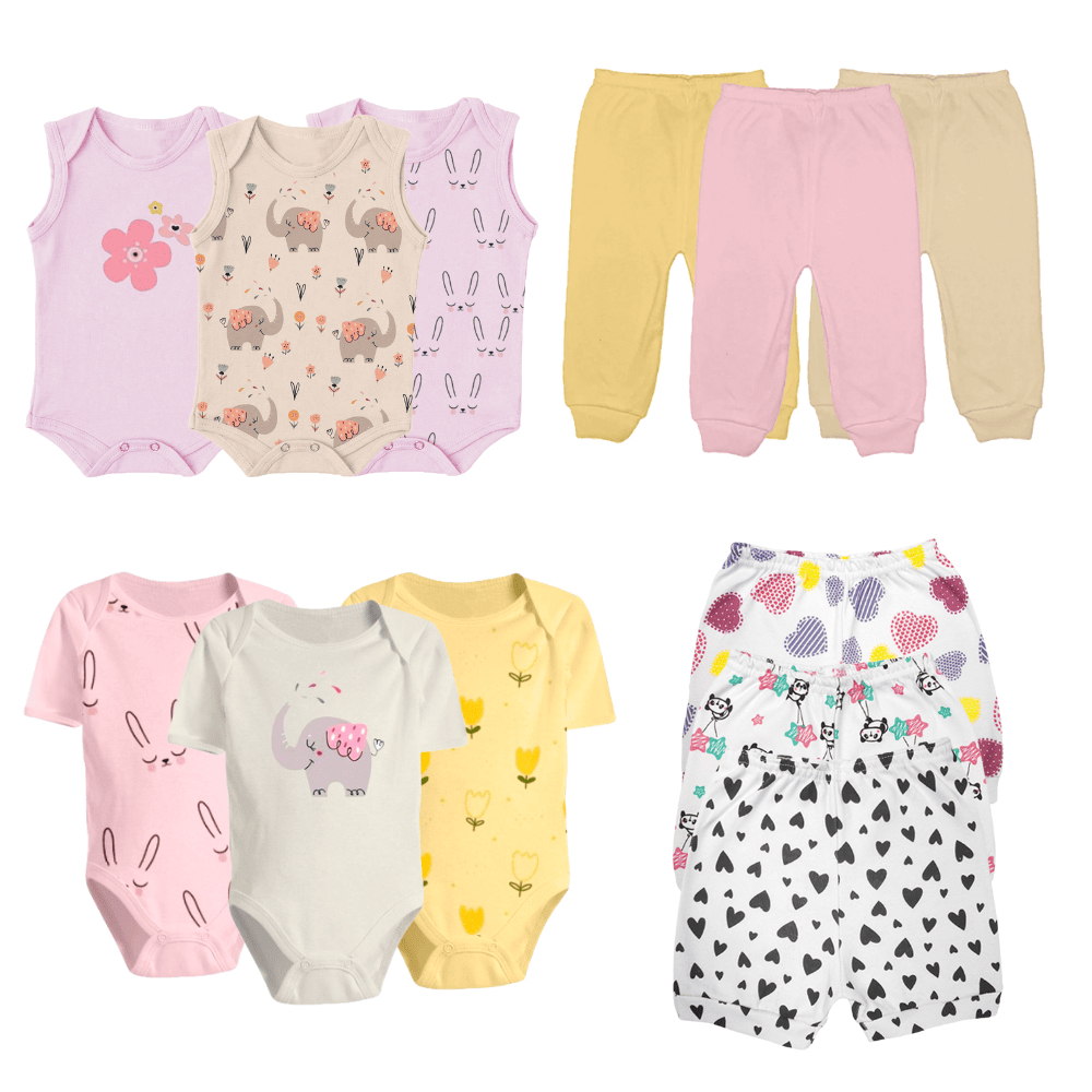 Kit Roupa de Bebê 12 Peças Enxoval Verão Body Mijão Shorts