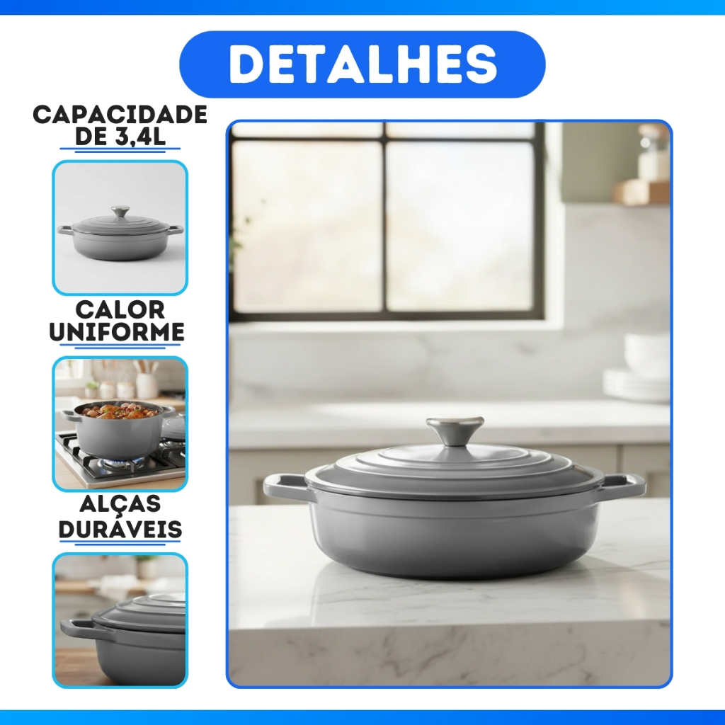 Caçarola Revestimento Cerâmico Antiaderente Avulsa Panela Com Tampa 3,4 Litros - MEGA OFERTA