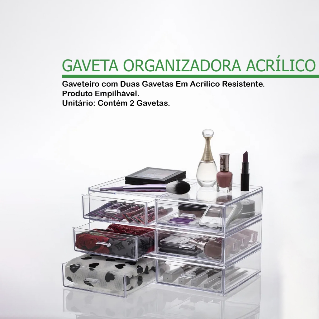 Caixa Organizadora Empilhável Com 2 Gavetas 21,5x12,5x5cm