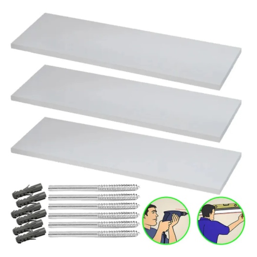 Prateleiras Lisa 60x20cm Suporte invisível Reta Branco De Parede Livro Organizadora Cozinha Quarto