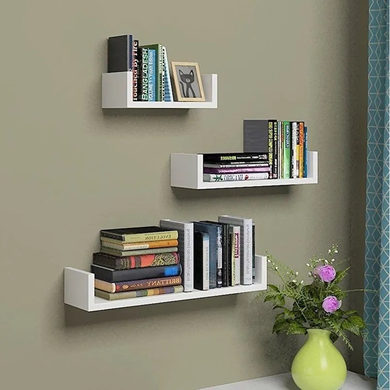 Kit 2 Prateleira Nicho U 50x10 Branco Decoração Livros Sala Quarto Cozinha