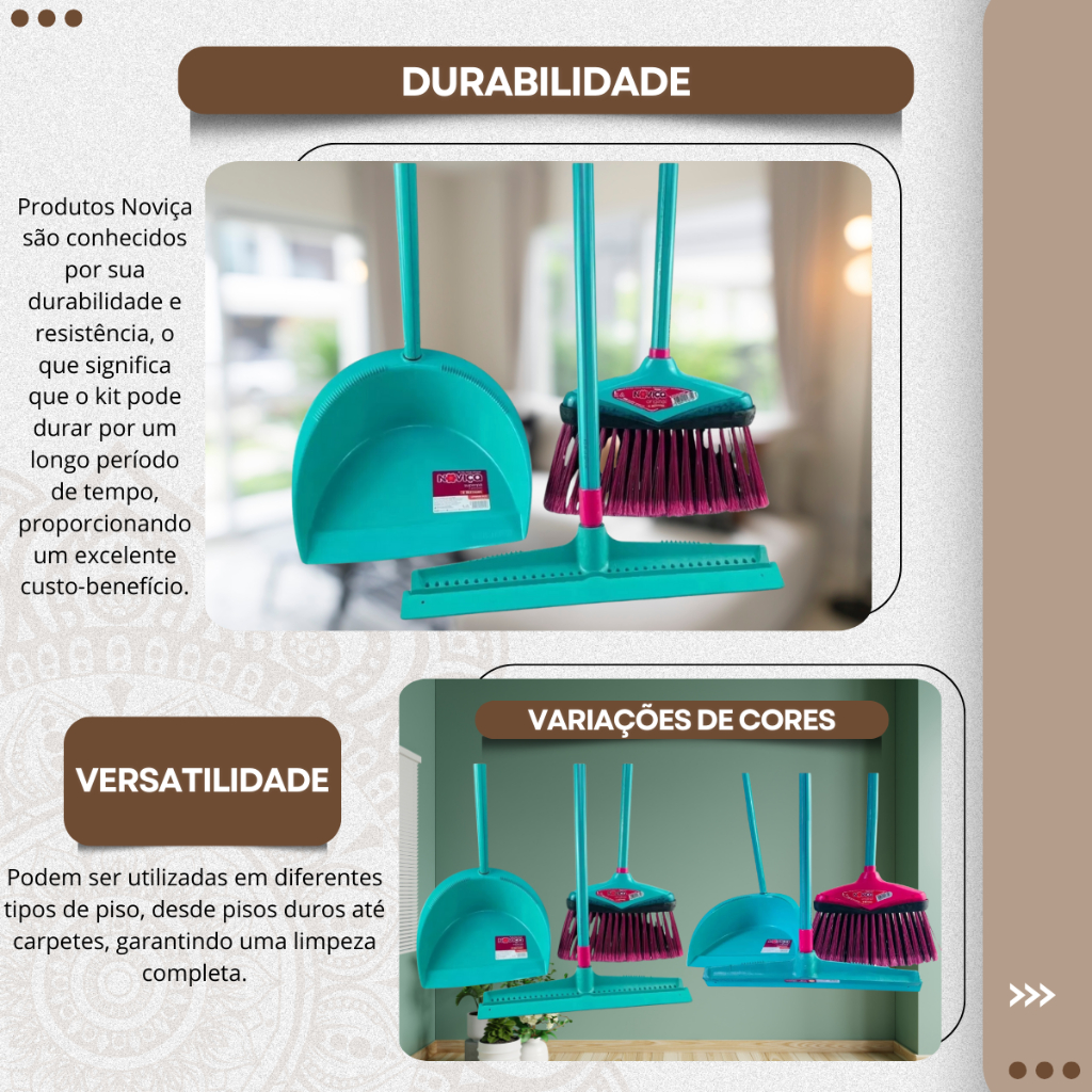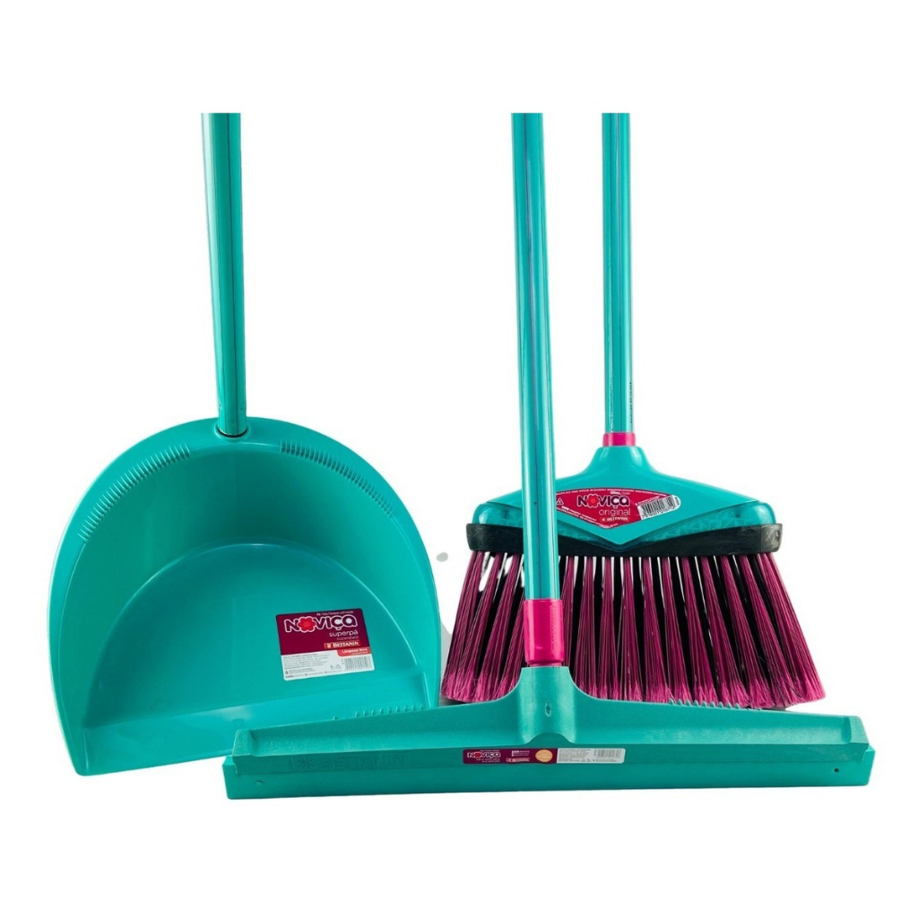 Conjunto Rodo 40cm + Vasoura E Pá Kit Com Cabo Kit Noviça, Kit vassoura