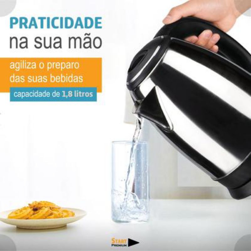 Jarra Elétrica Bule Chaleira Inox 1,8 Litros Economica 110V potência de 1100W aquecimento rápido