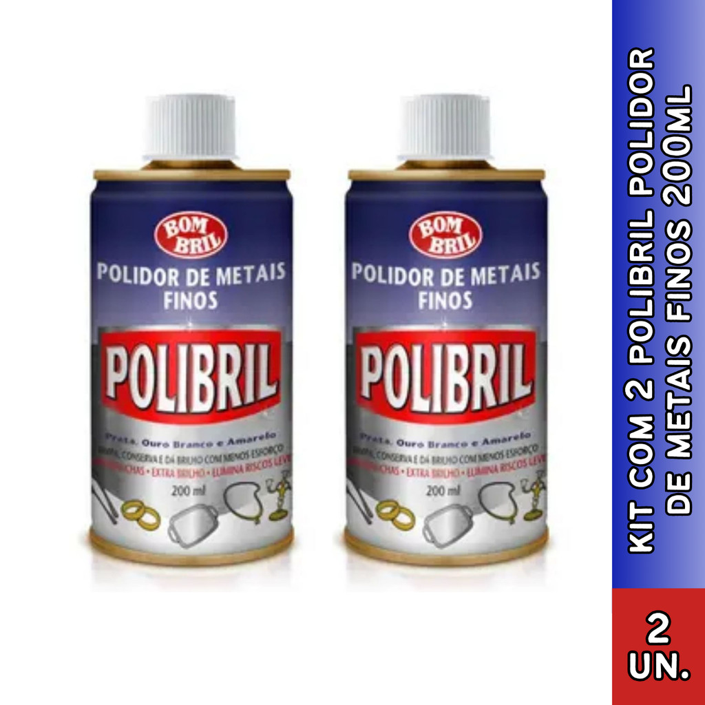Kit de Polibril Metais Brancos Polidor Liquido 200 ml (Kit com 2 ou 3)