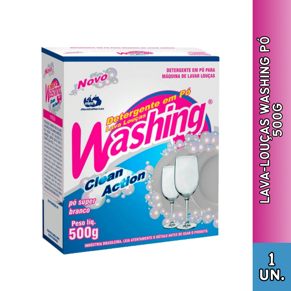 Detergente em pó lava louças Washing em Pó Clean Action 500G