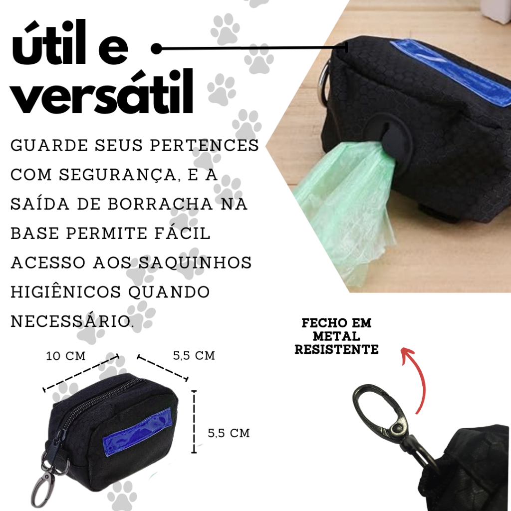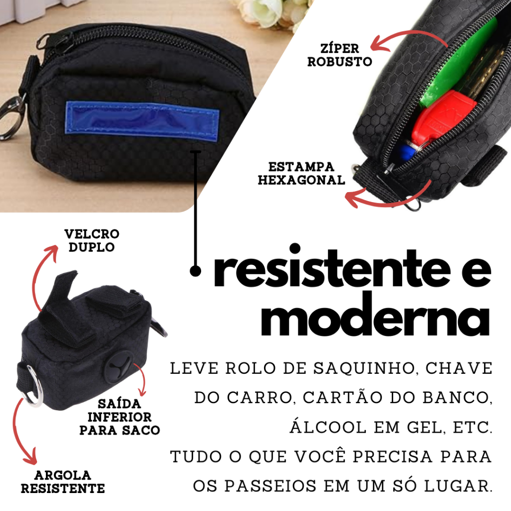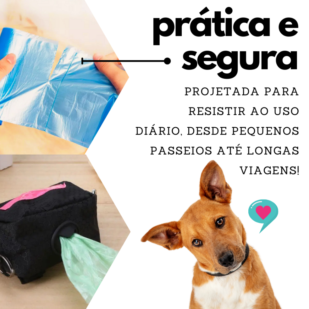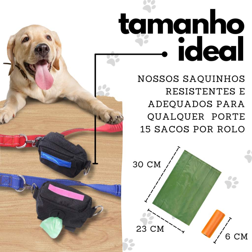 Kit Bolsinha Porta Saquinho + 3 Rolos Cata Caca Lixo Coco Coleta de Fezes