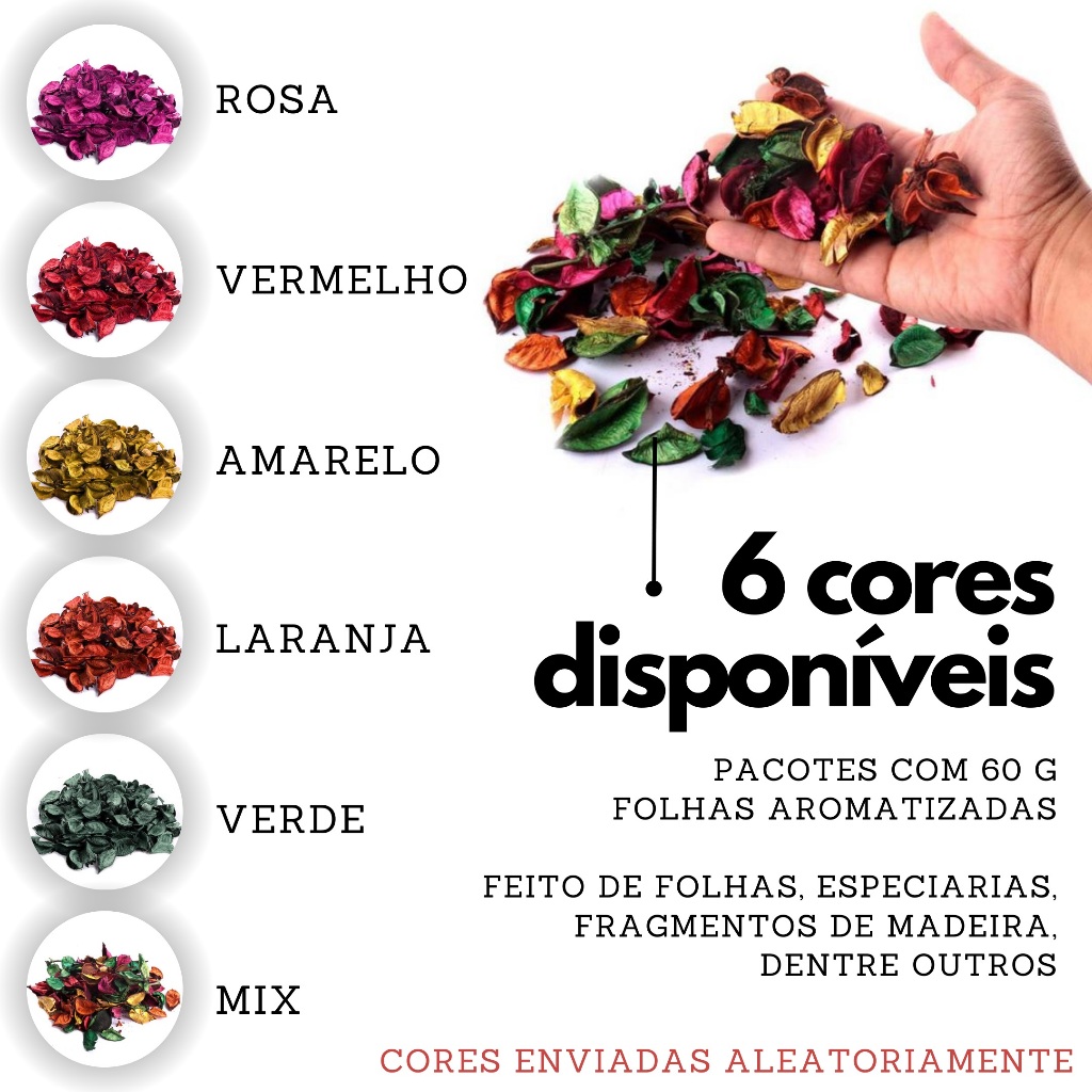 Kit 6 Folhas secas Pot pourri aromatizada para decoração 60g