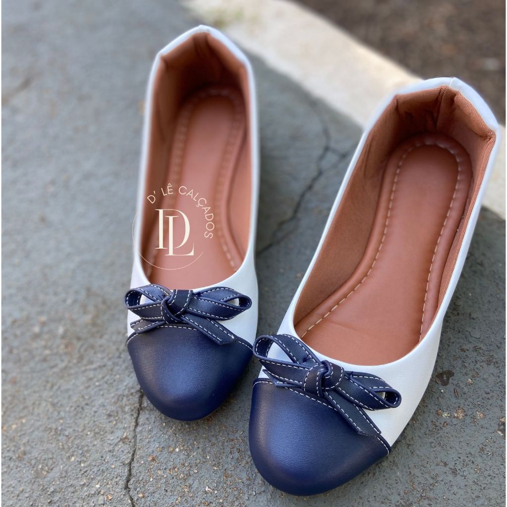 Sapatilha Feminina Bico Redondo Confortável Sapatilha Bico Azul Lacinho