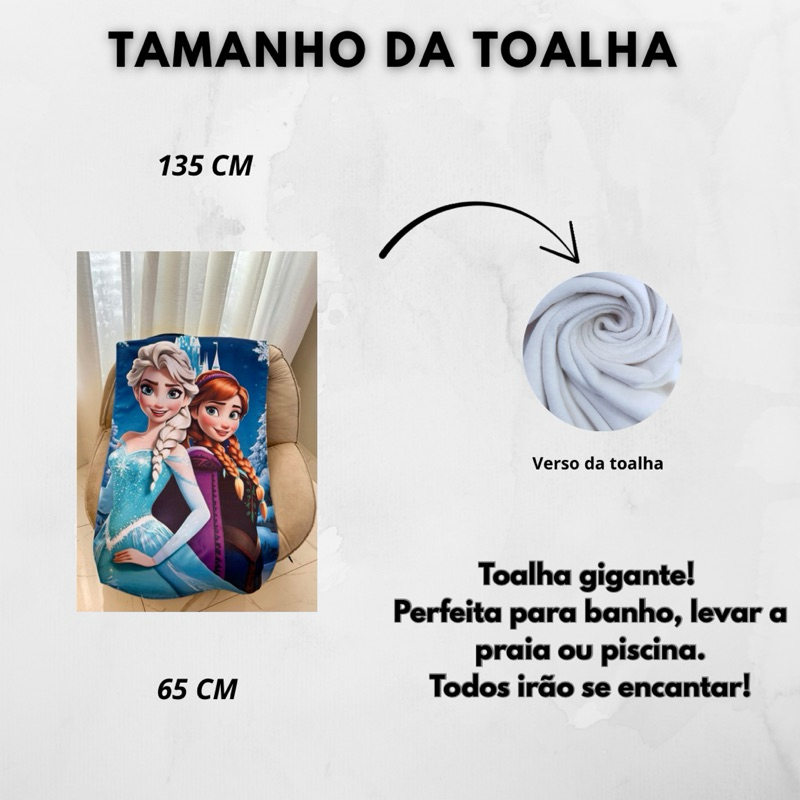 Toalha Infantil Banho Praia Algodão Elsa e Frozen 1,65x0,65 cm Promoção