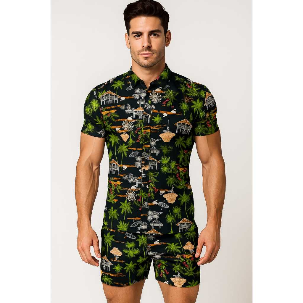 Conjunto Camisa E Shorts Masculino Mauricinho Estampado