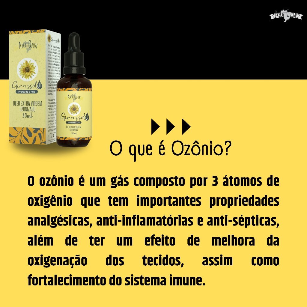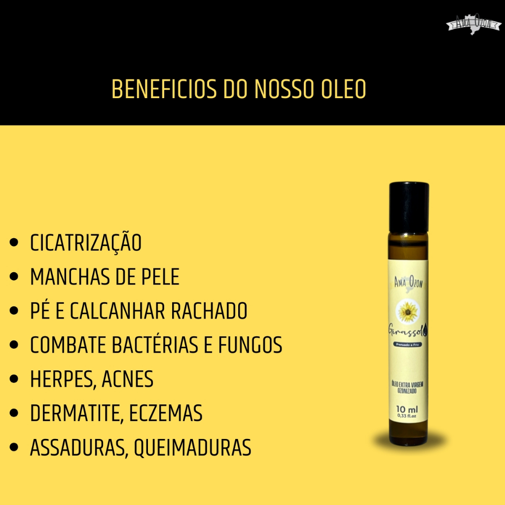 Óleo Carreador Ozonizado Girassol Puro Super Concentrado Potencializa o óleo Essencial Ama Ozon
