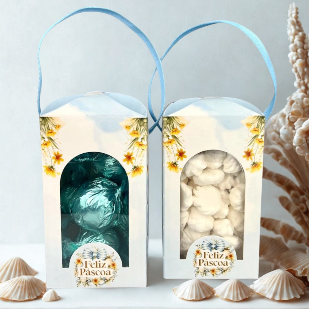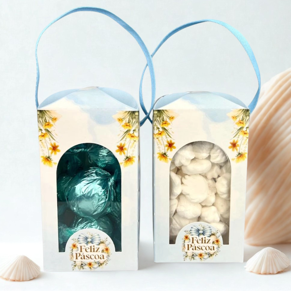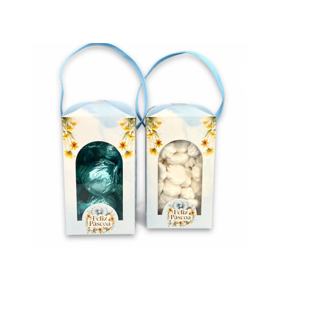 10 Caixas p/ Trufas, Pipocas e outros c/ Alça - Coleção SONHO DE PÁSCOA - Páscoa 2025-Embalagem-Chocolate-Presente.