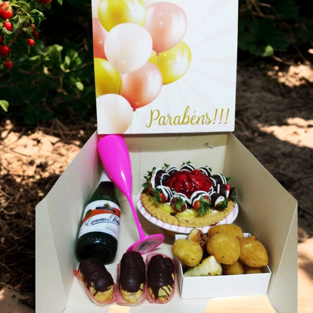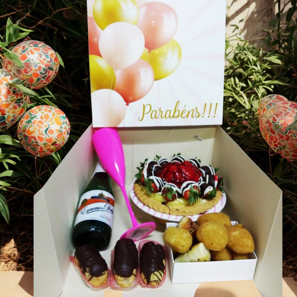 1 Caixa para Bolo ou Festa na Caixa 27x27x16 com alça em gorgurão - Bexigas--Embalagem-Confeitaria-Lembrancinha-