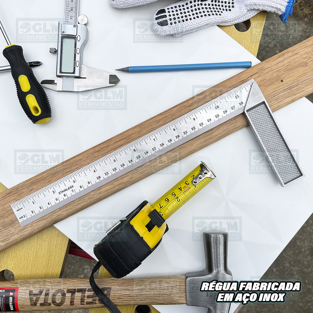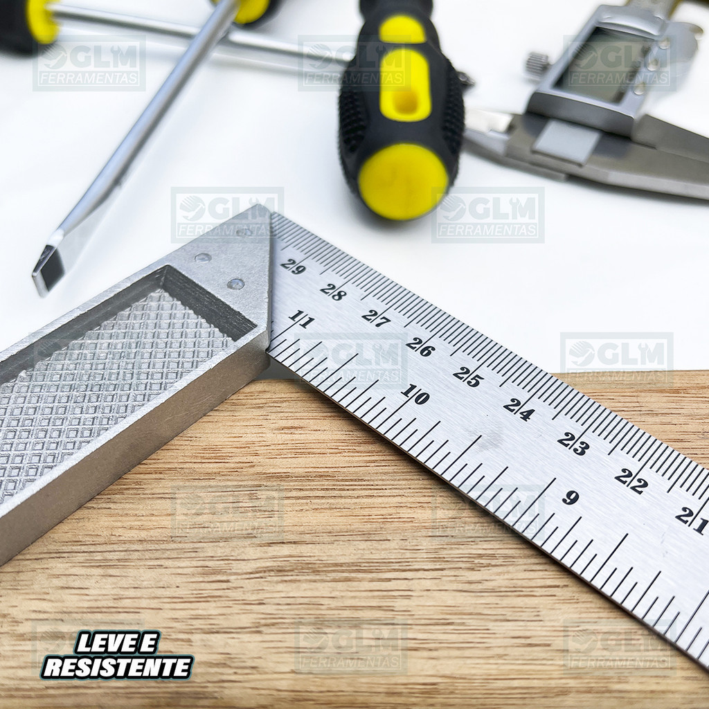 Esquadro De Aço Inox C/ Cabo De Alumínio 12'' 30 Cm