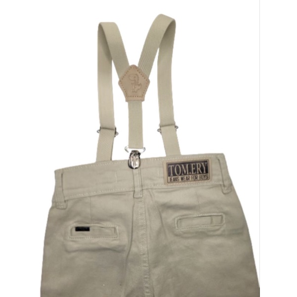 Calça De Sarja Bege Infantil, Com GRAVATA Regulador Interno E Suspensorio