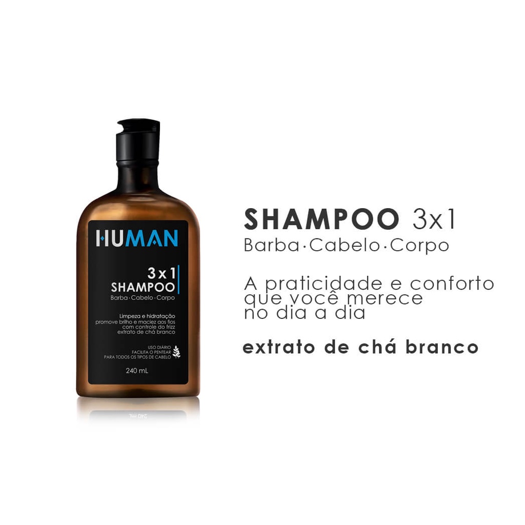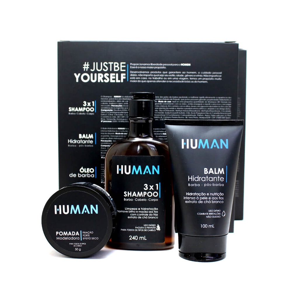 Kit para Cabelo Human - Shampoo 3 em 1 + Balm Hidratante + Pomada Modeladora
