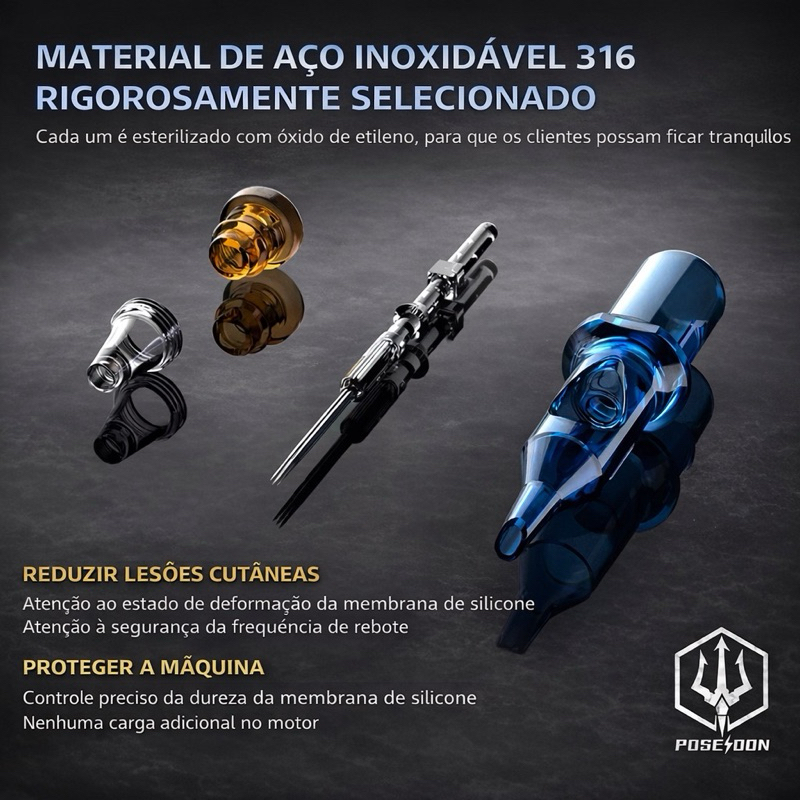 Cartucho Poseidon Para Tatuagem Tattoo kit com 10 unidades Tattoo