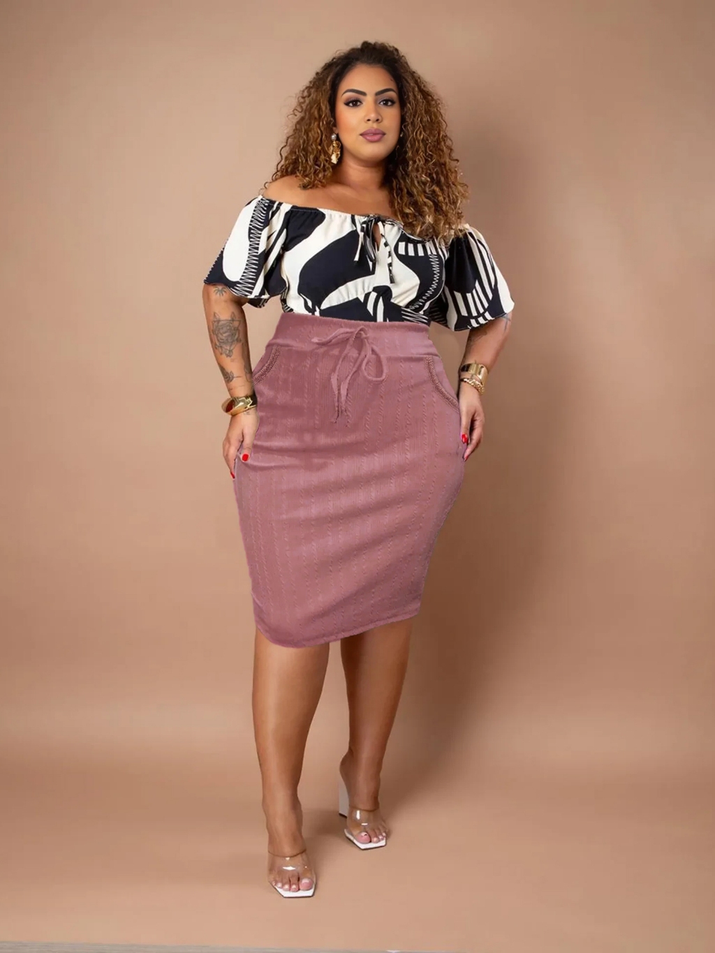 Saia Casual Linda e Elegante de Bolsos midi Moda Plus.