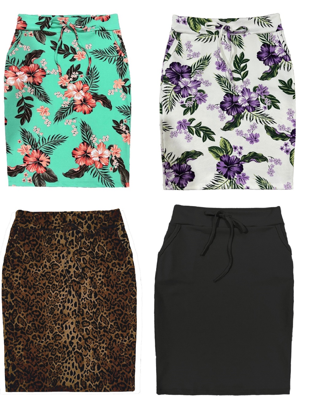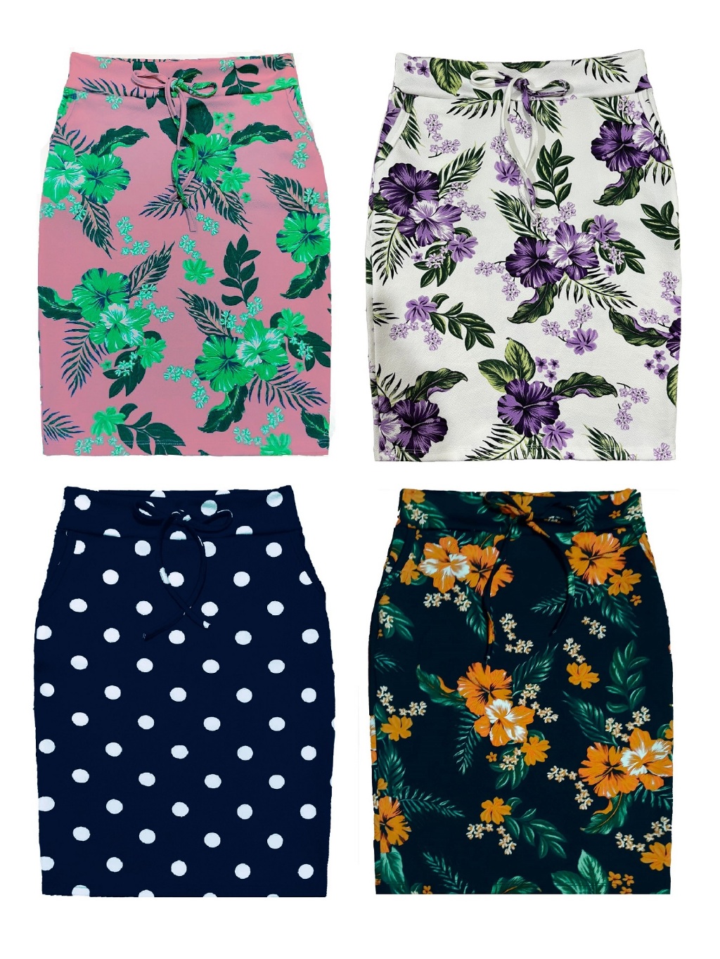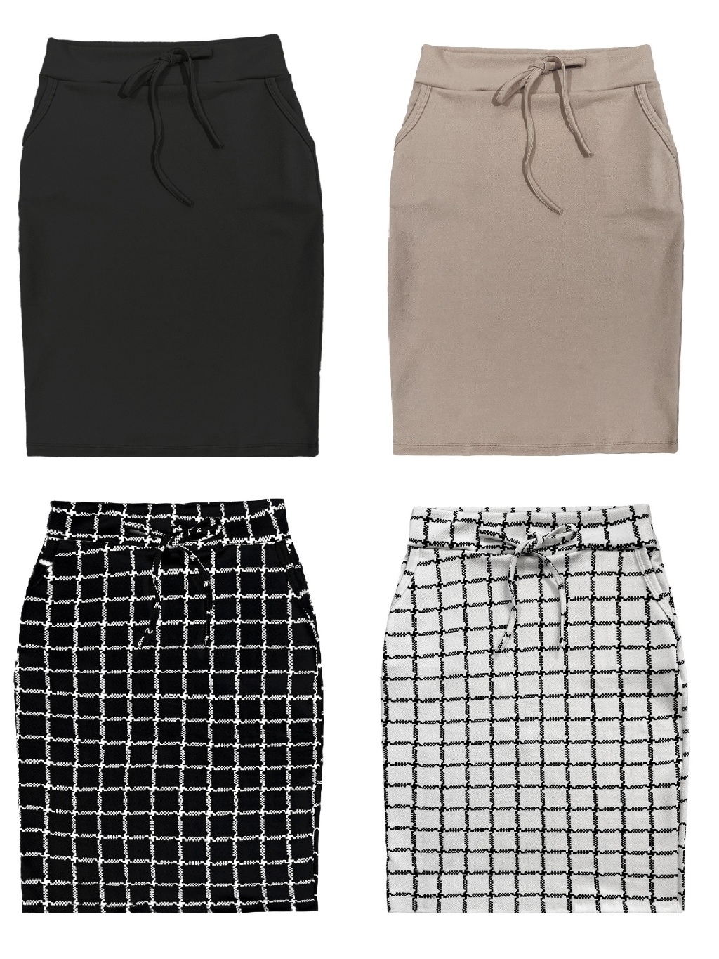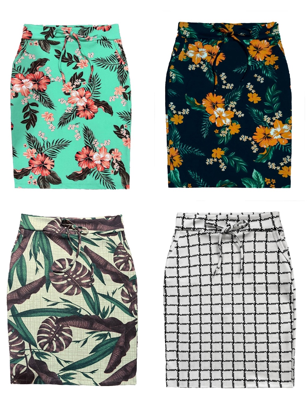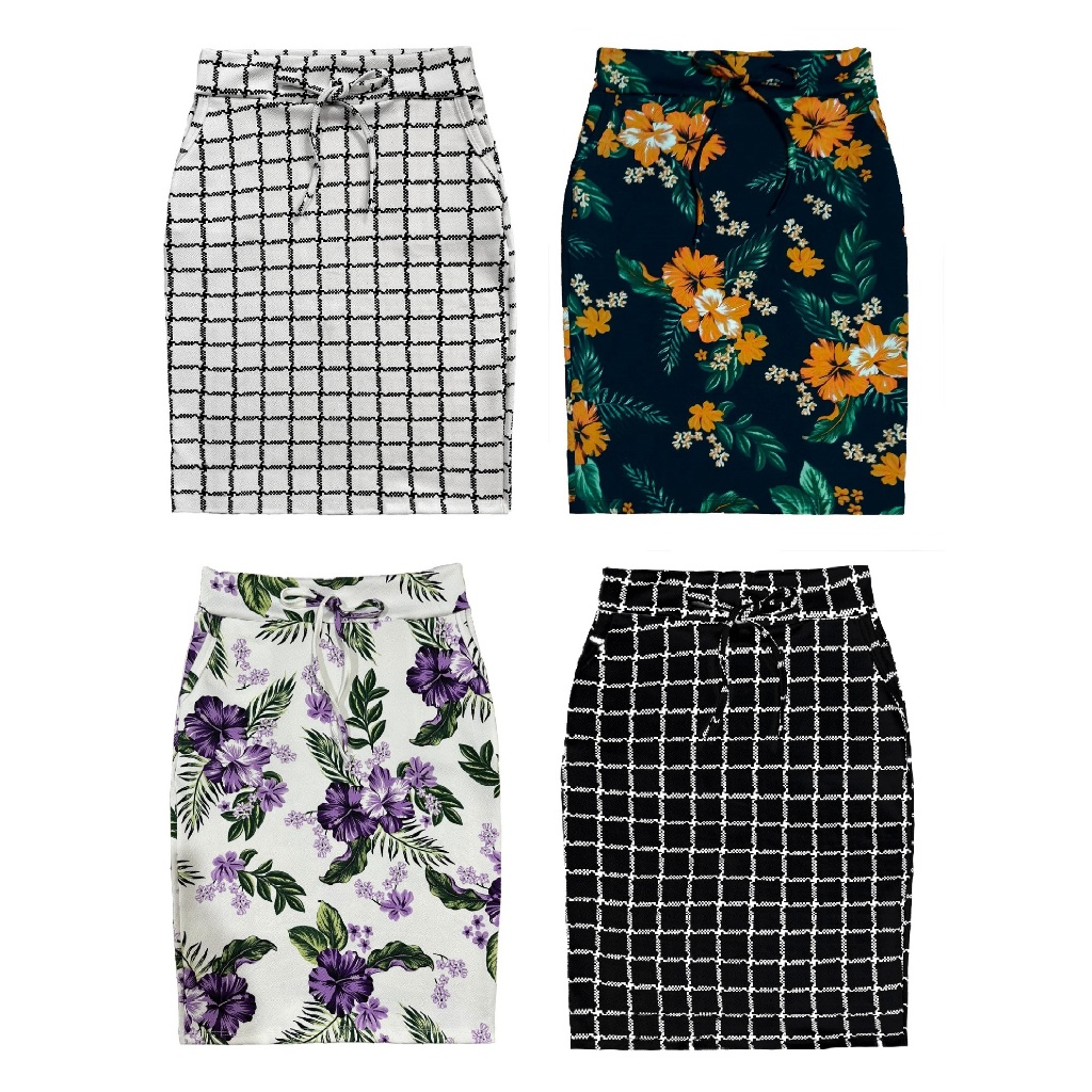 Kit 4 Saias Midi Lapis Feminino Estampadas e Lisas Possui Bolso