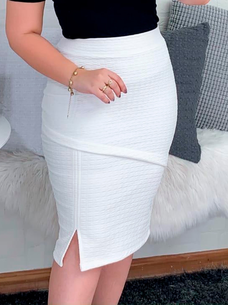 Saia Cintura Alta Secretária Moda Evangélica Midi Lápis Detalhes fenda!