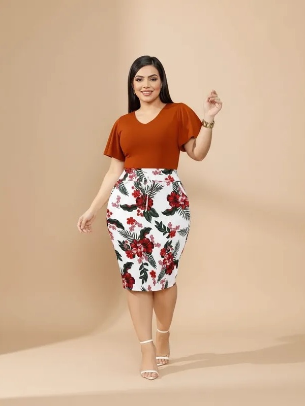Saia Secretária com bolsos Lindas Moda Evangélica Estampadas