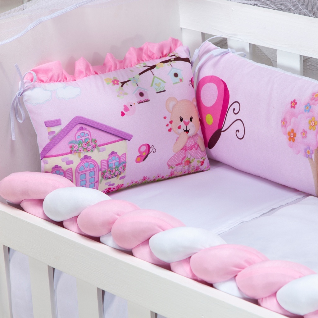 Kit Protetor Mini Berço Safari 08 Peças Menino e Menina e Outros Modelos Com Trança e Lateral