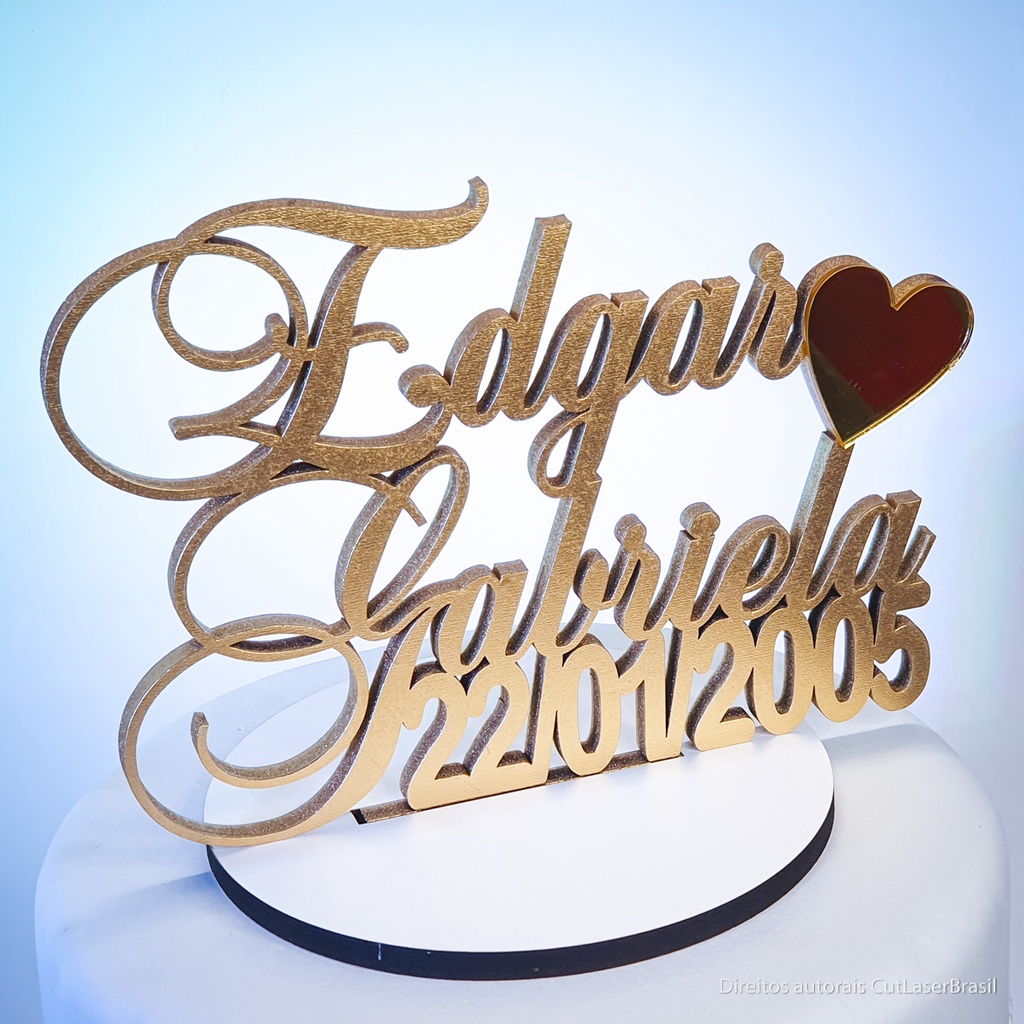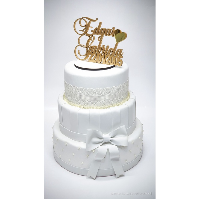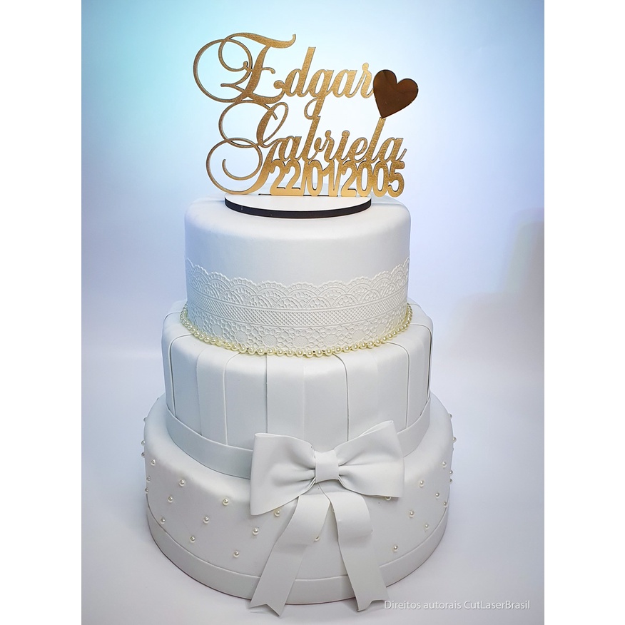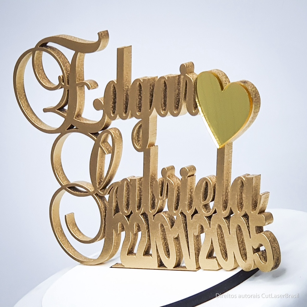 Topper De Bolo Mdf Personalizado Casamento Decoração Dourado
