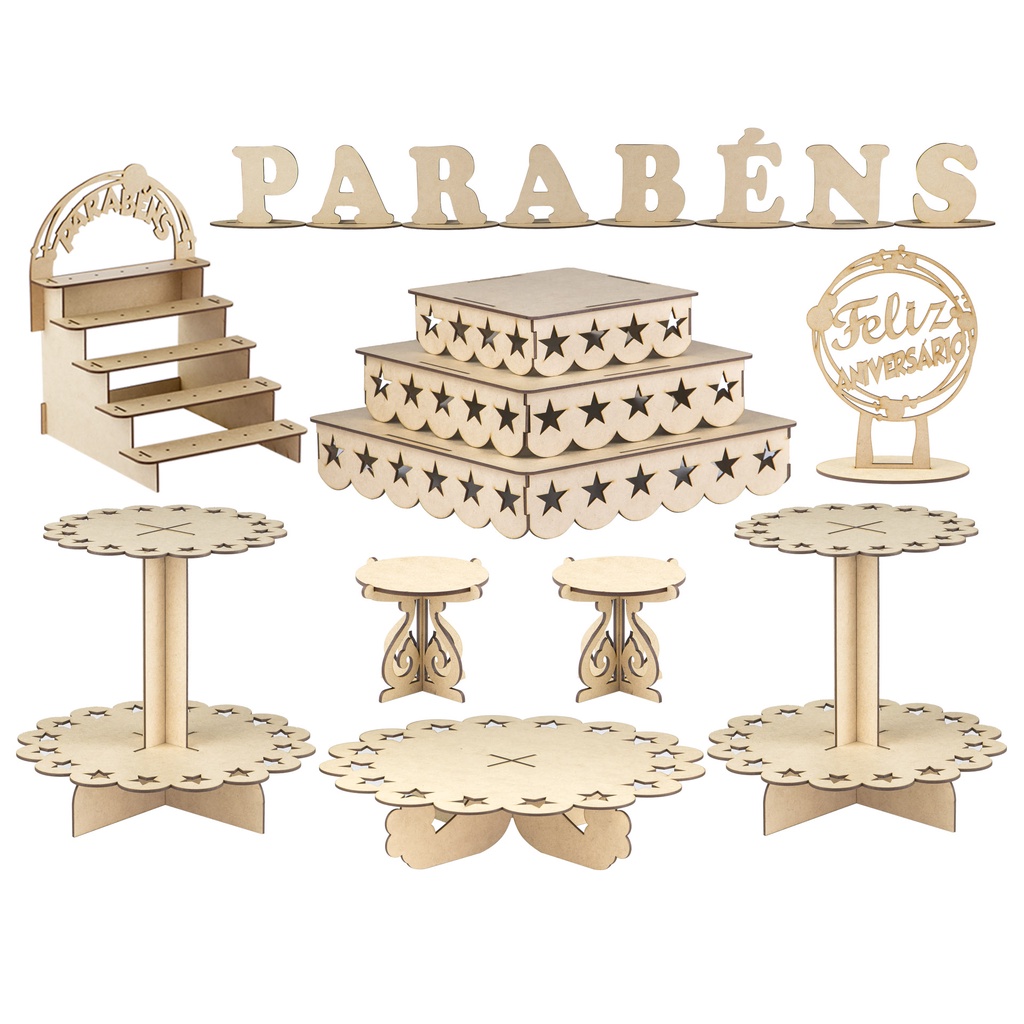 Kit Festa Mdf Estrela 2 torres de doces completo o melhor