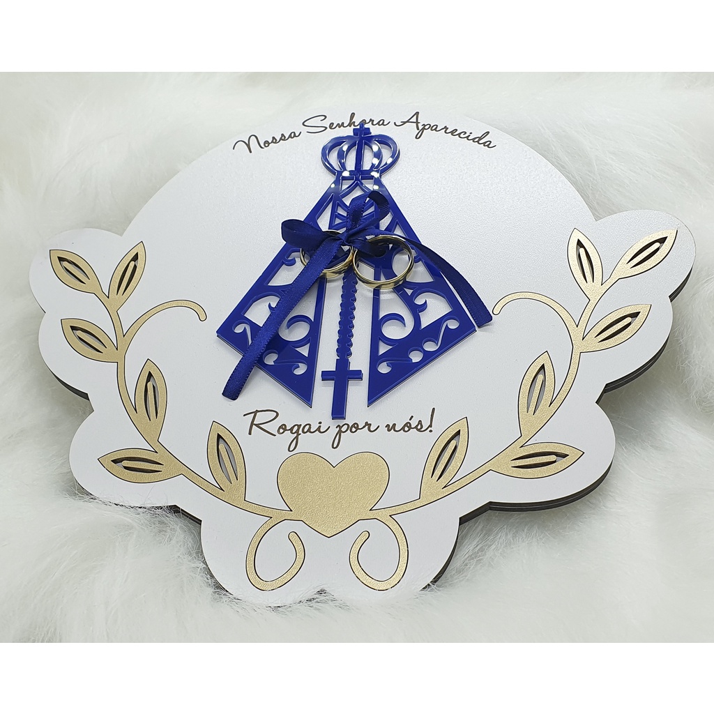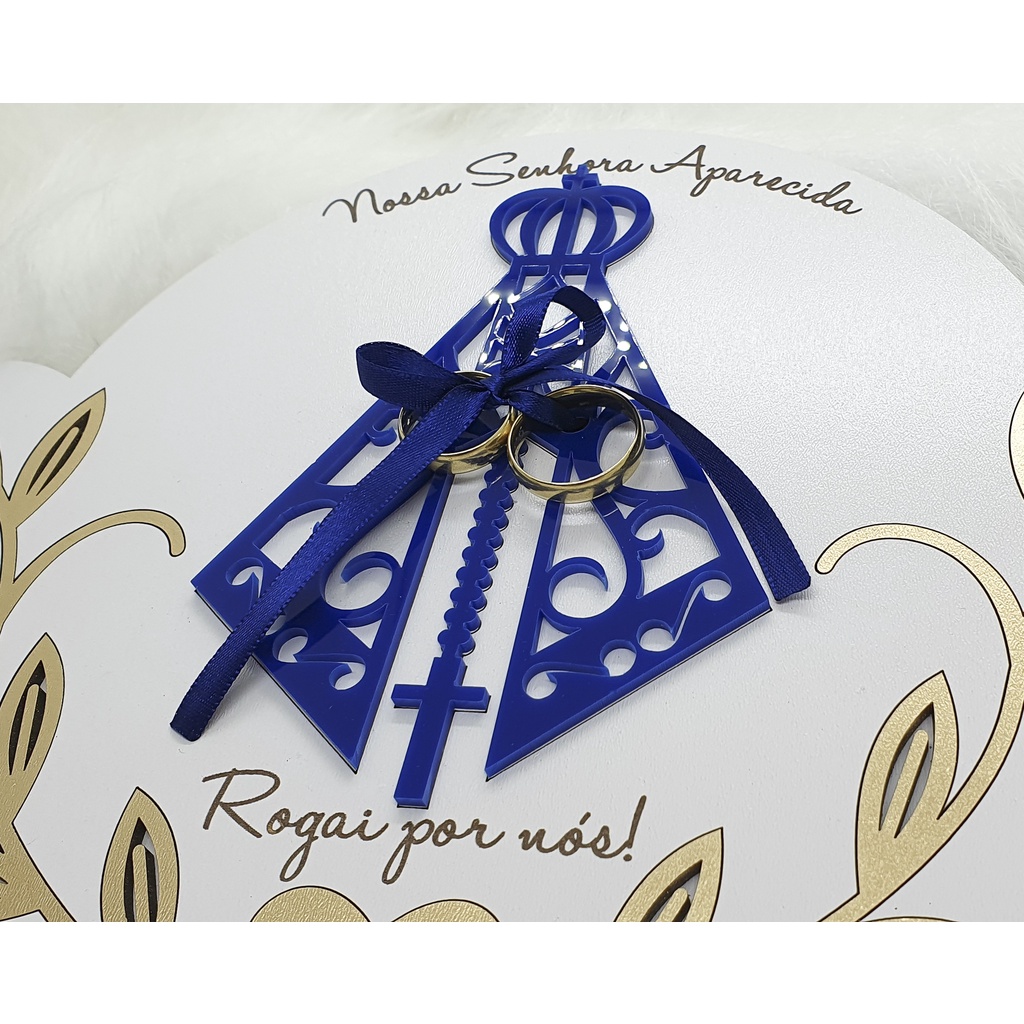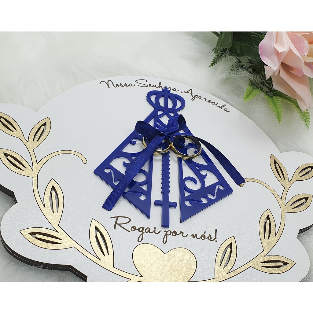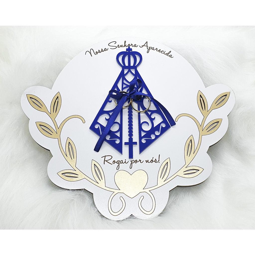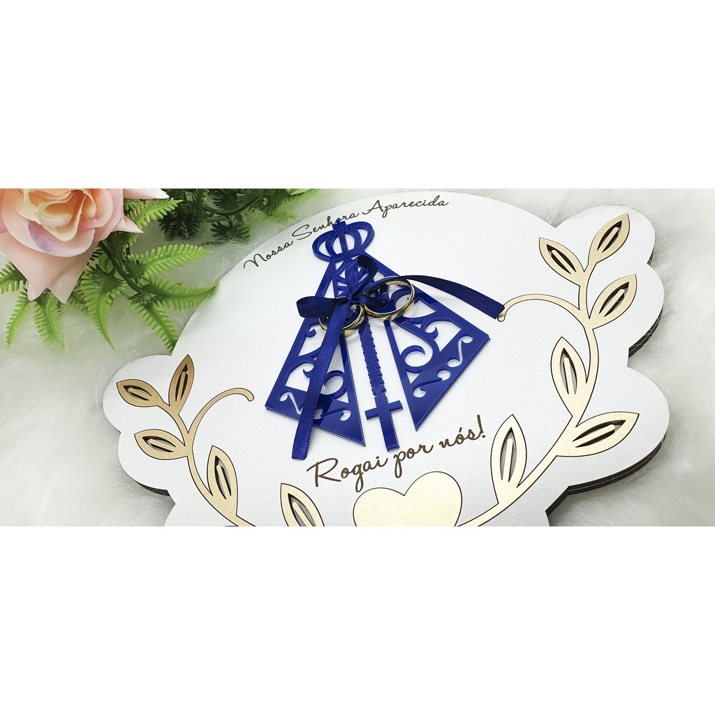 Porta Aliança Nossa Senhora em Mdf Branco Rogai Por Nós 25cm