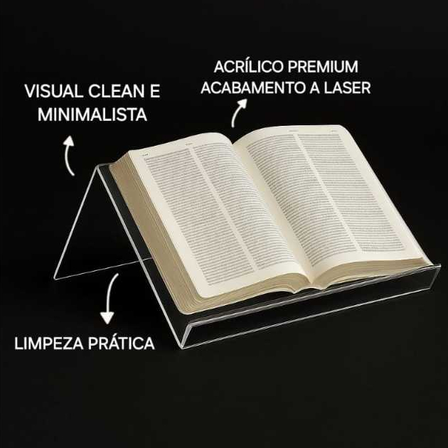 Suporte Aparador de Leitura Acrílico Cristal Transparente Bíblia e Livros Estudo Decoração