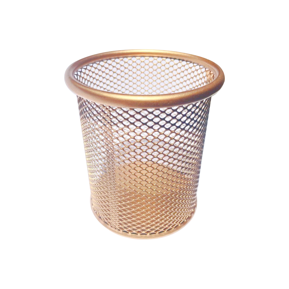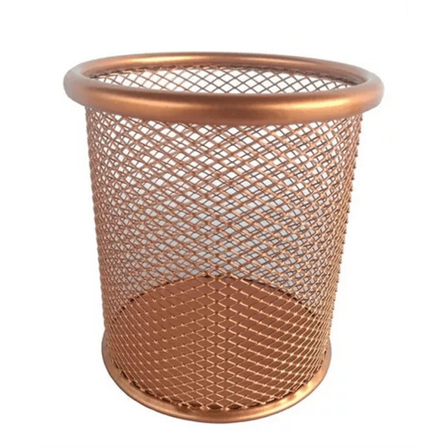 Porta Lápis De Metal Organizador Decorativo De Mesa Redondo Rose Gold