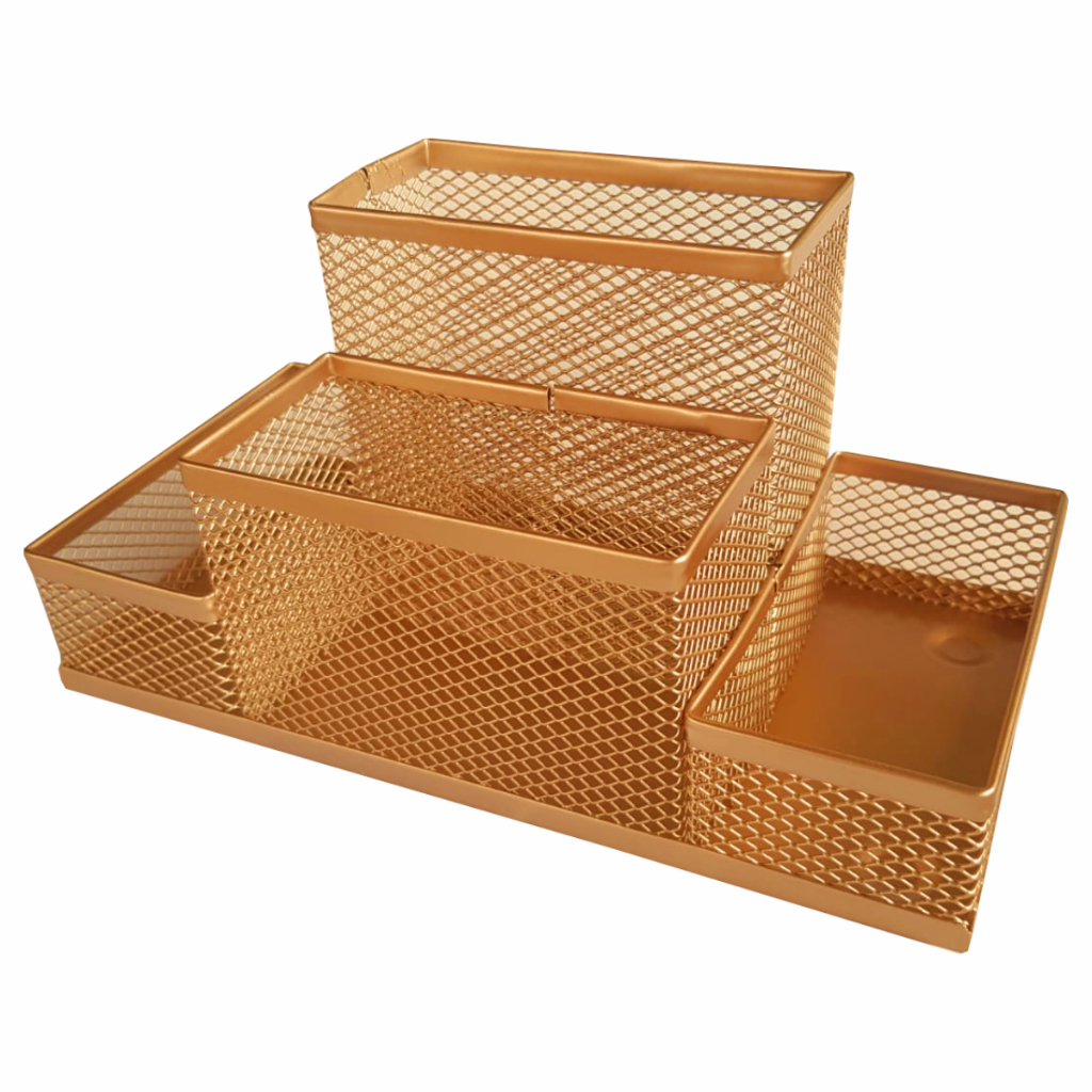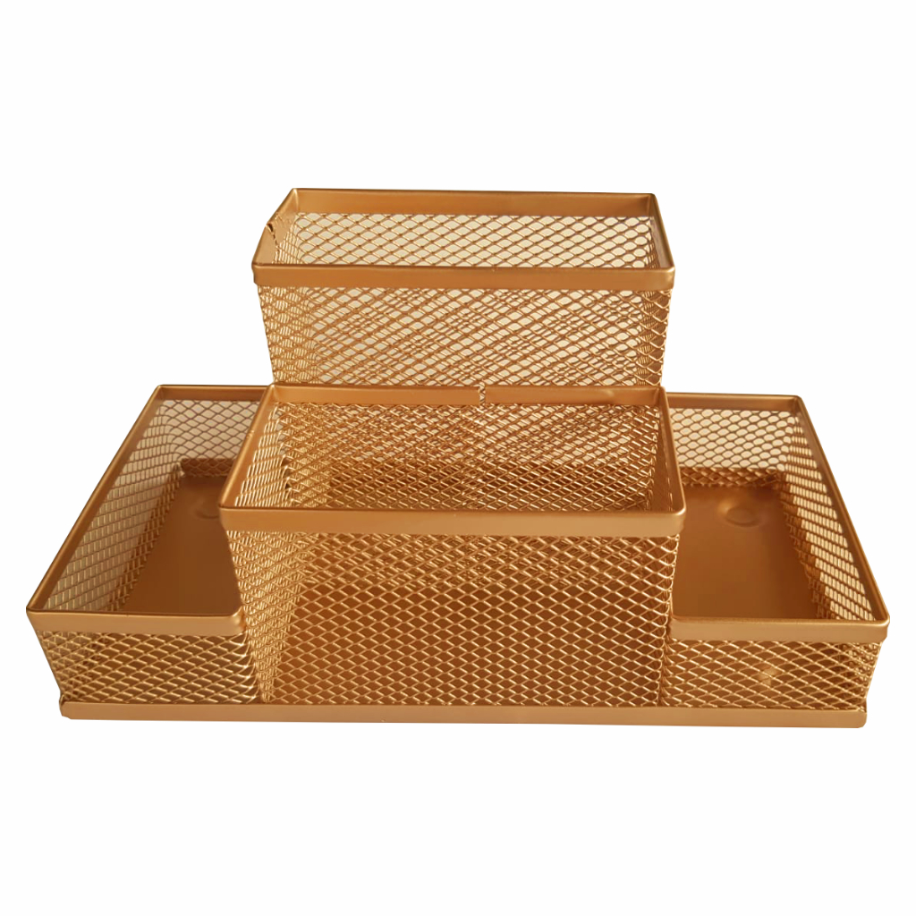 Organizador Dourado Mesa Porta Treco Caneta Lápis Ouro Escritório Aramado Objetos