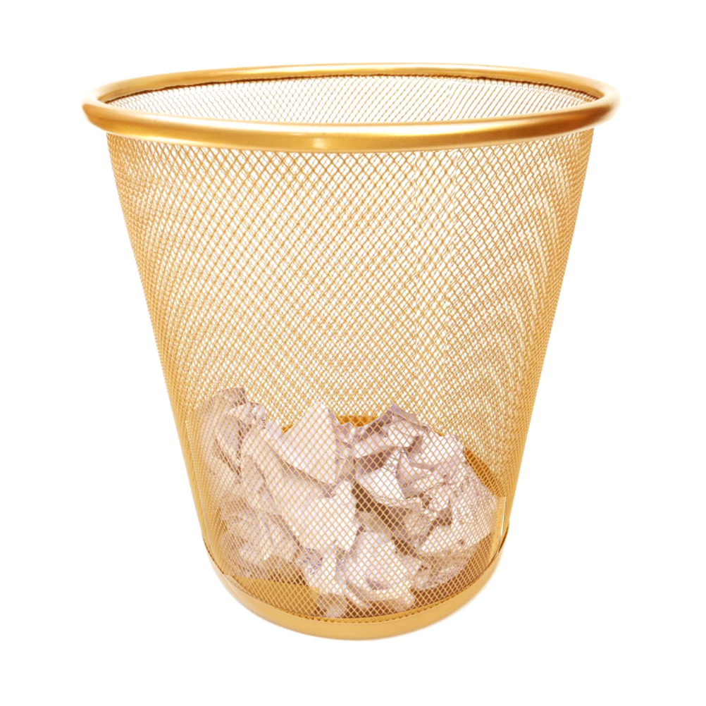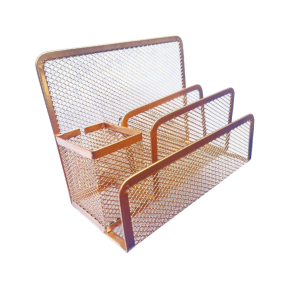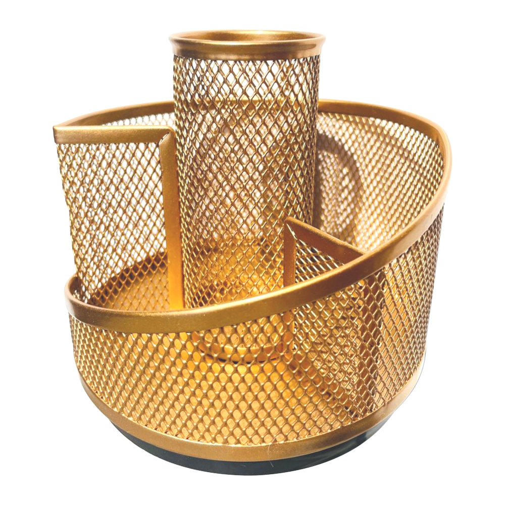 Organizador De Mesa Escritório Aramado Dourado Bandeja Porta Caneta Lápis Clips Giratório Cesto