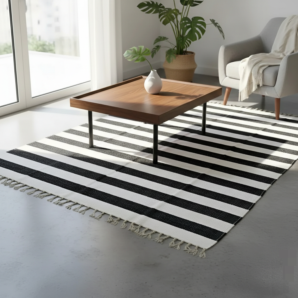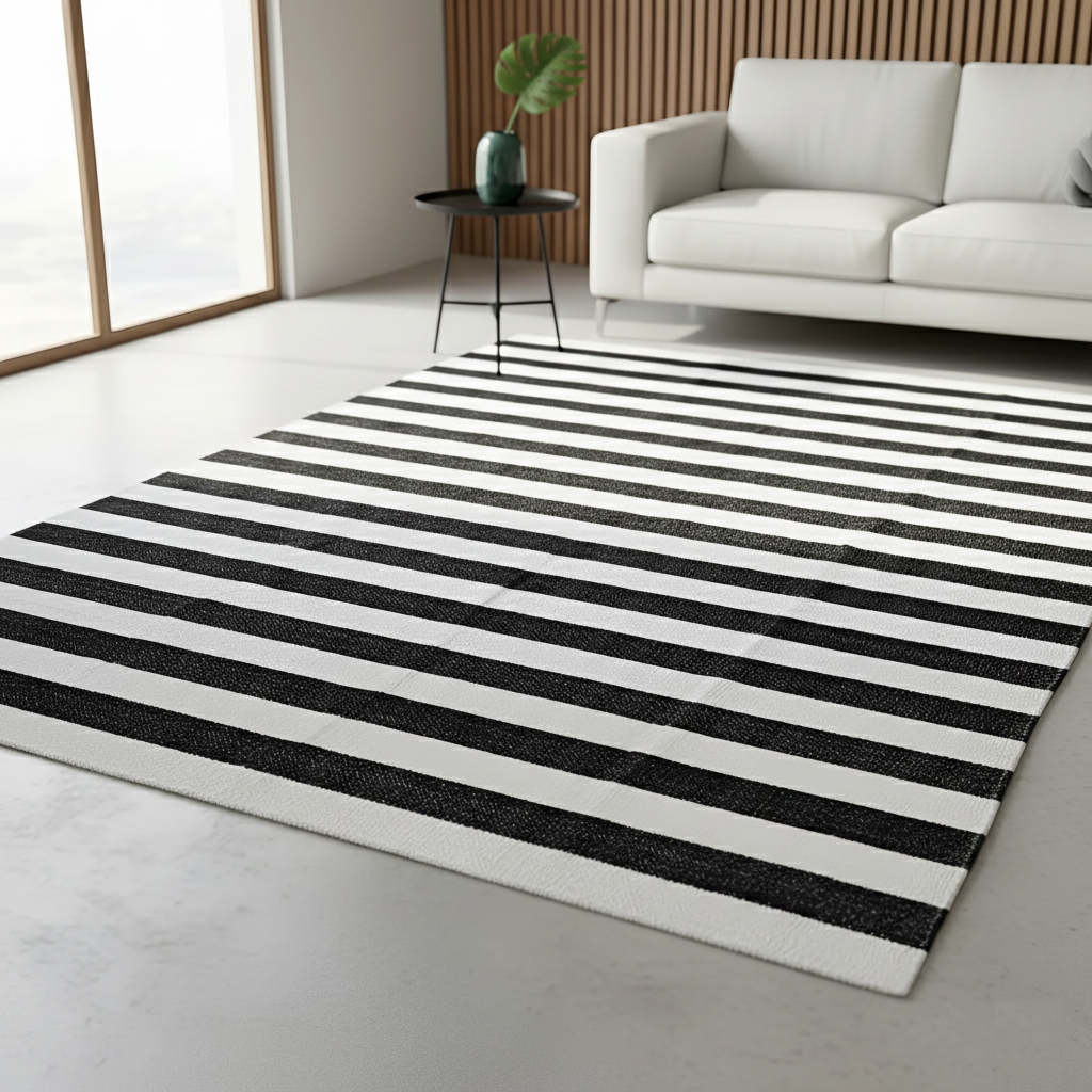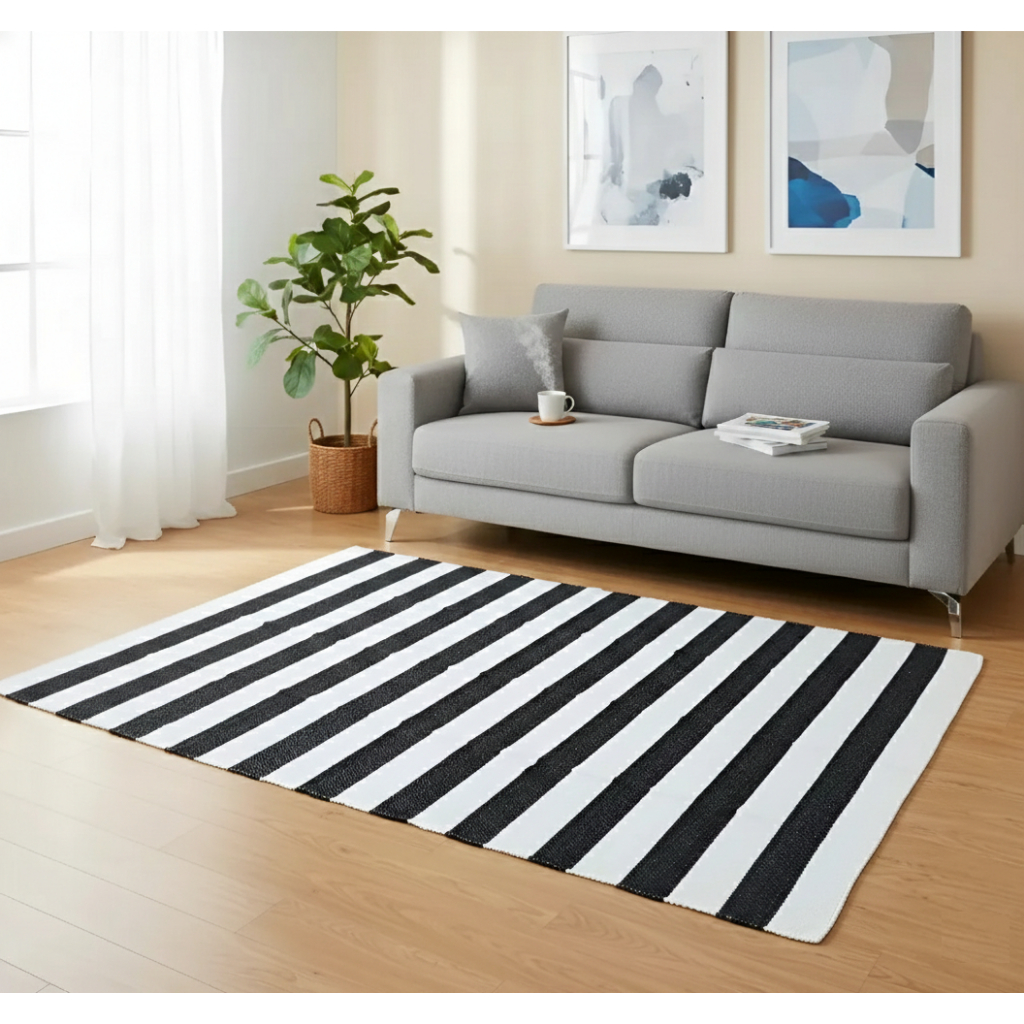 Tapete Sala Preto E Branco Listrado Grande 1,50 X 2,00 Malha