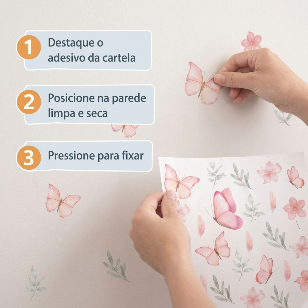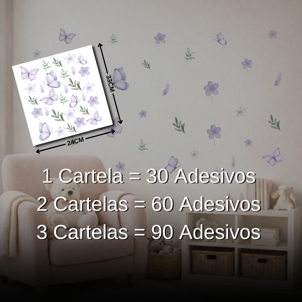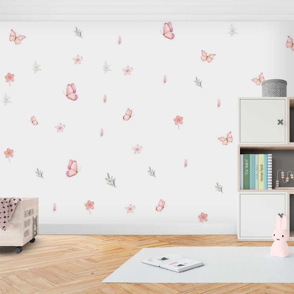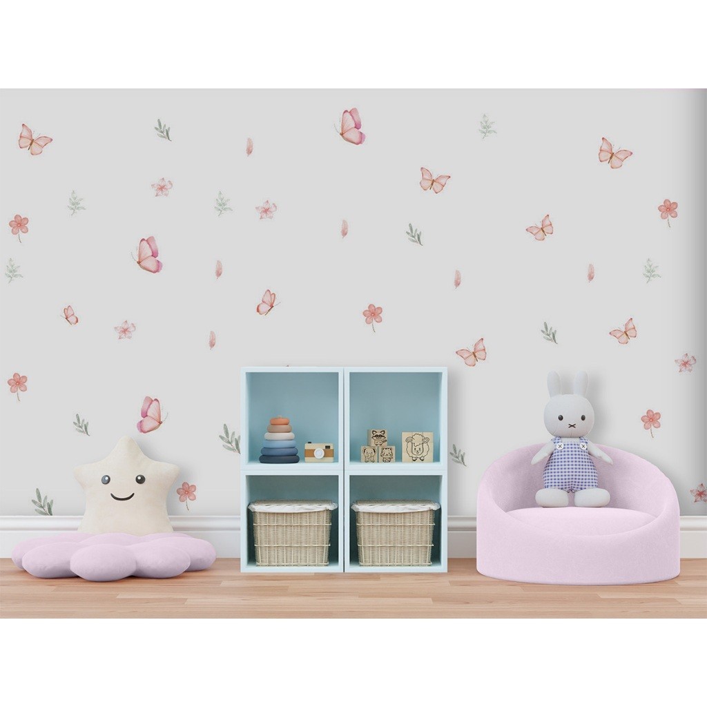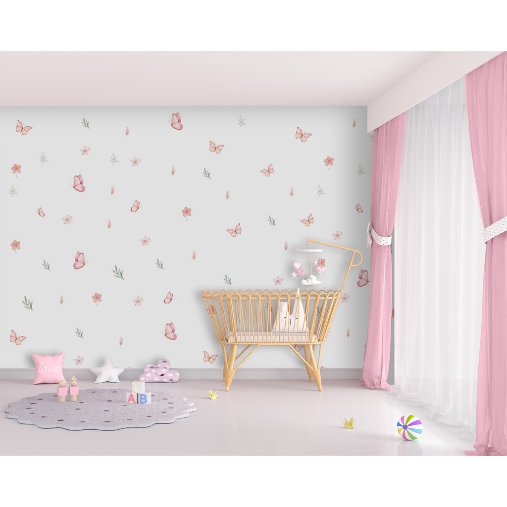 Adesivo de Parede Borboletas e Flores Decoração Delicada para Quarto Infantil Feminino