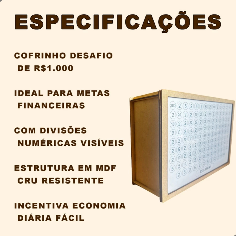 Cofre Desafio 10mil/5mil/1mil - Caixa Dinheiro De Madeira - Método Japonês - Escolha seu Objetivo