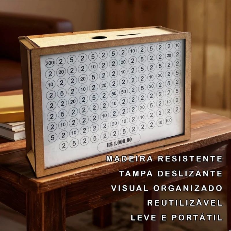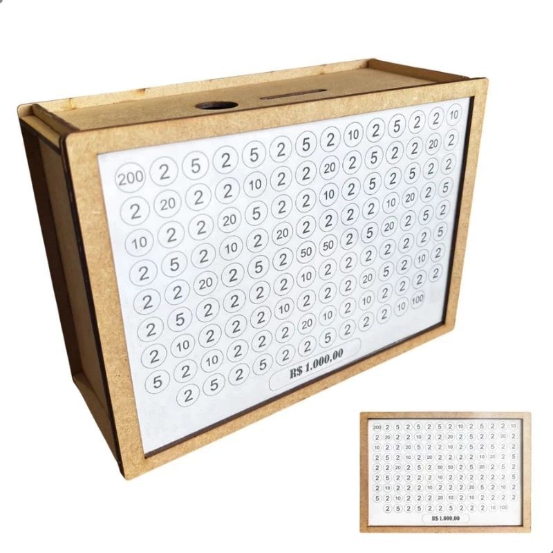 Cofre MDF Desafio 10mil/5mil/1mil Caixa Dinheiro Cofrinho De Madeira Método Japonês Escolha Sua Meta