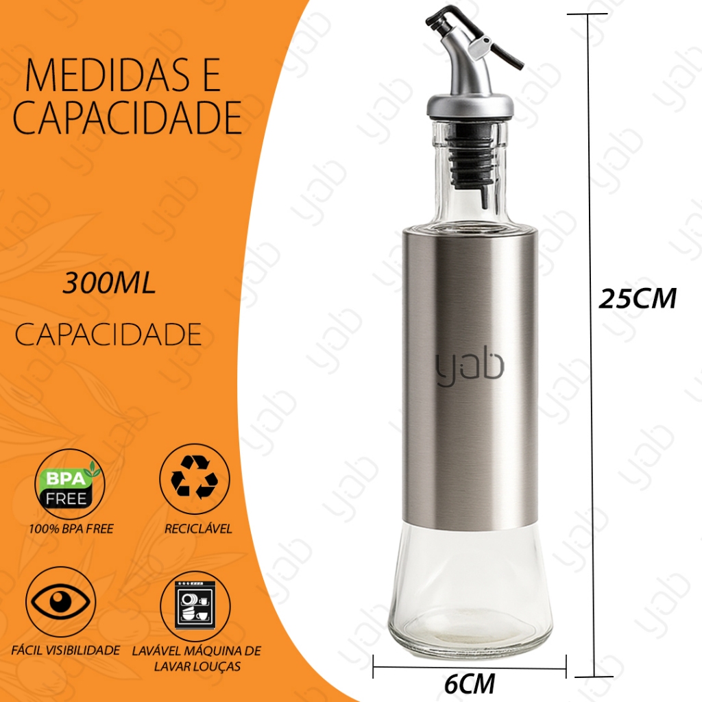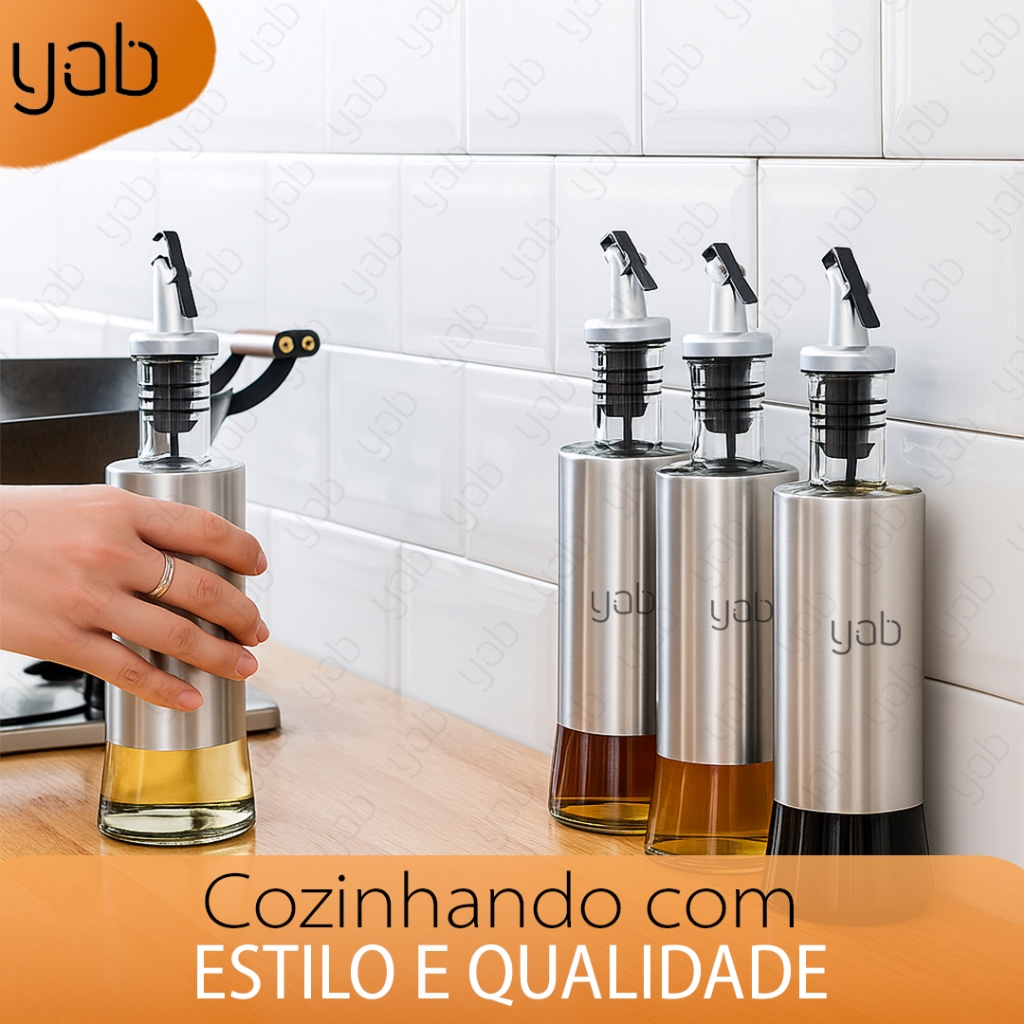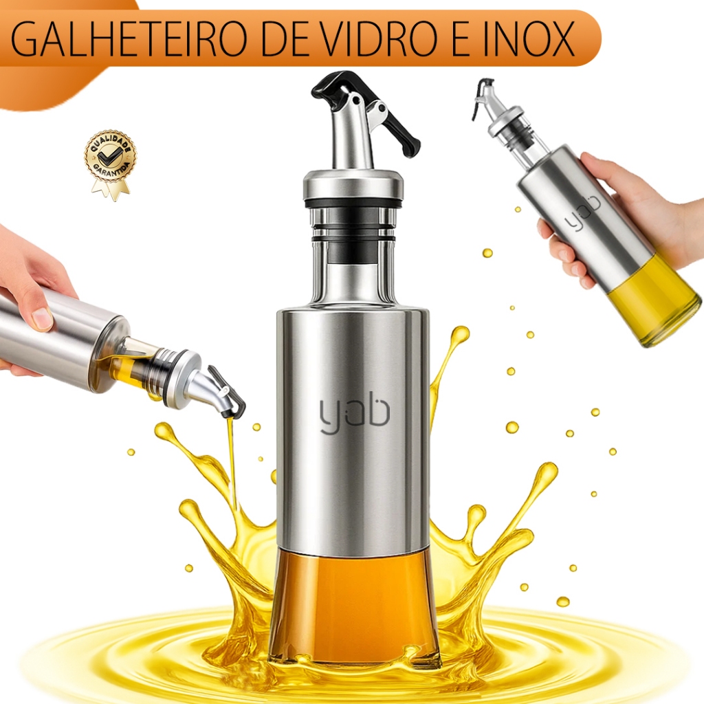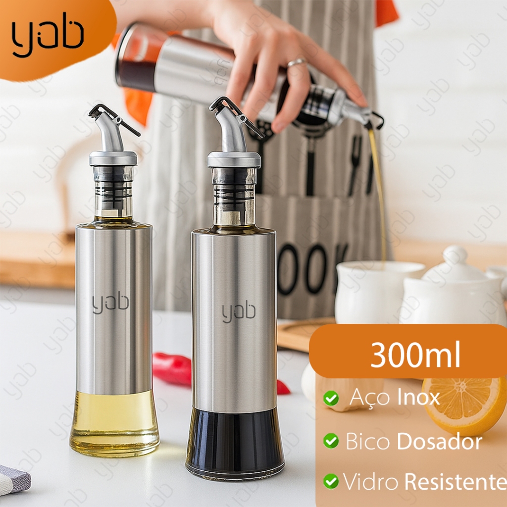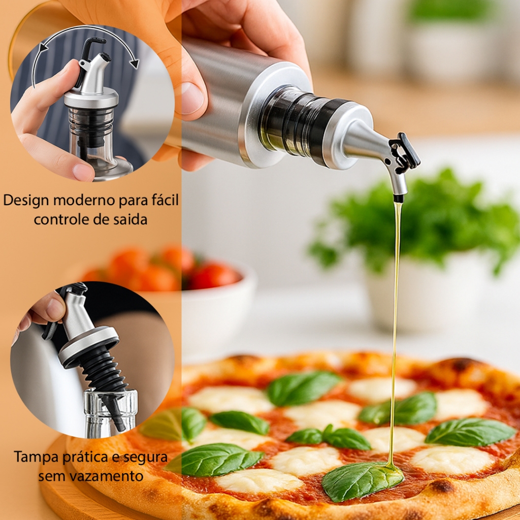 Kit 1/2/3 Galheteiro Porta Azeite Vinagre E Óleo C/ Dosador Inox 300 ML