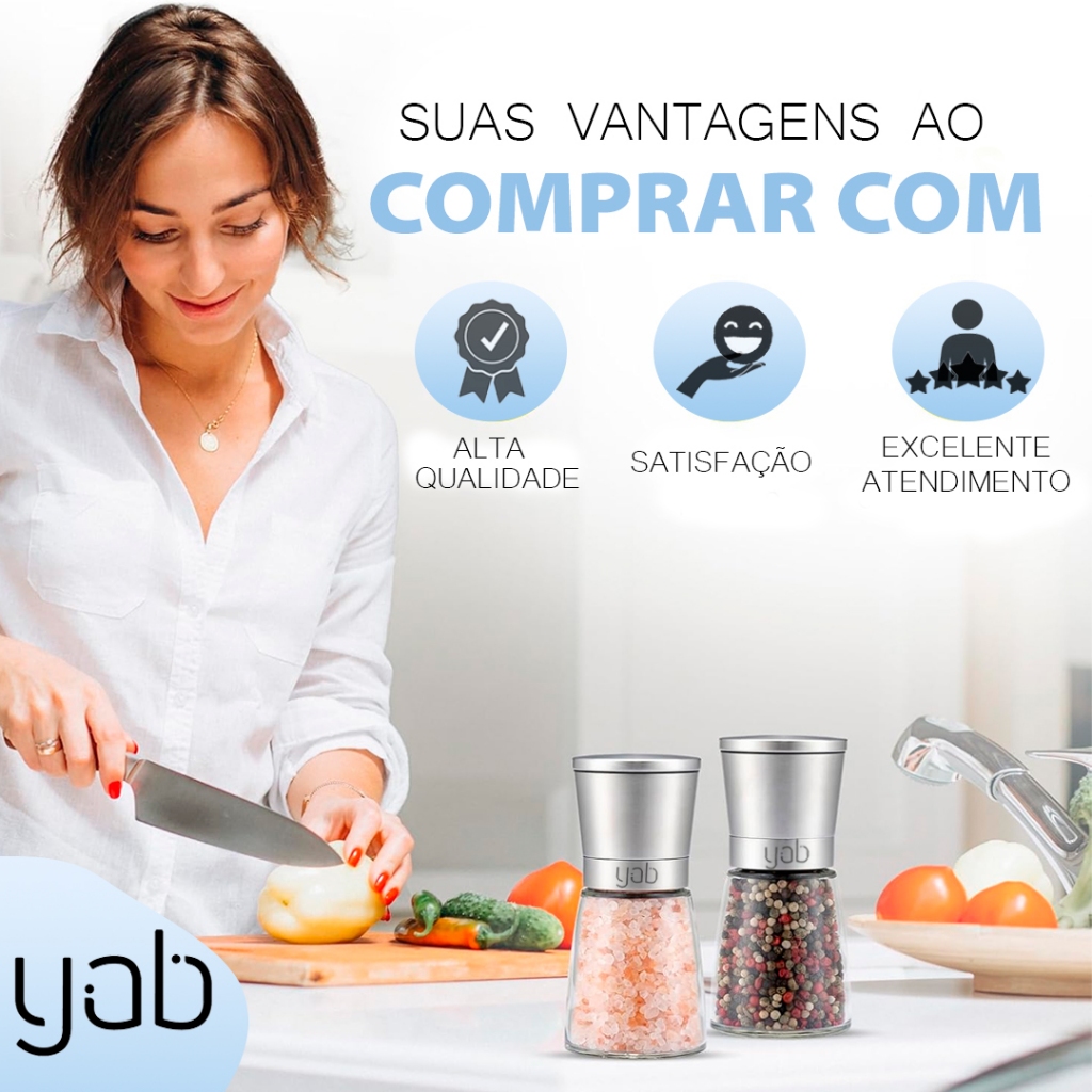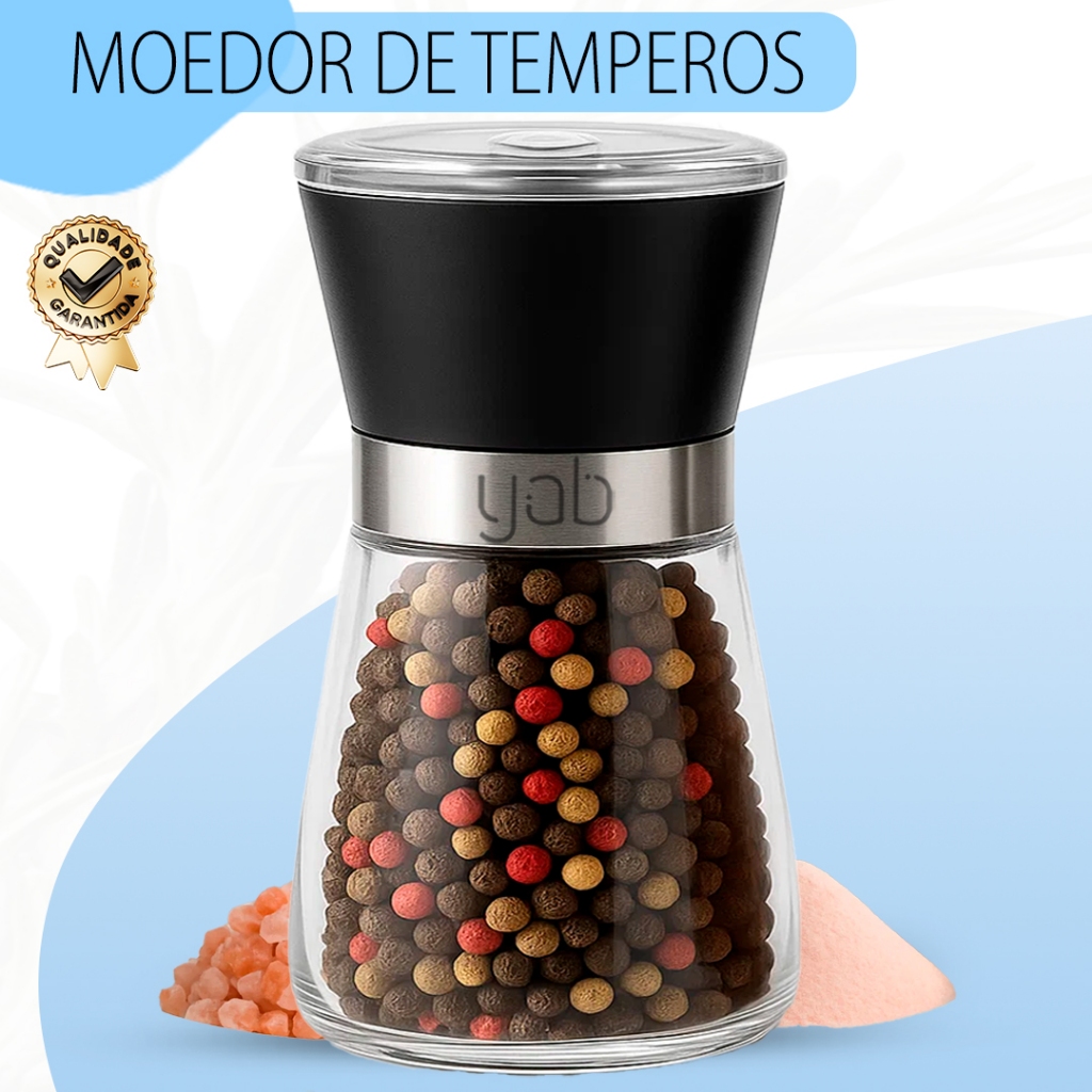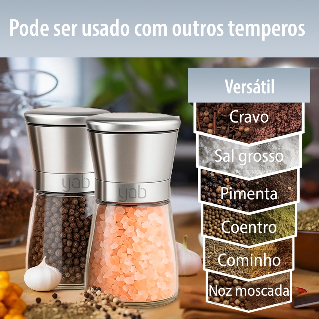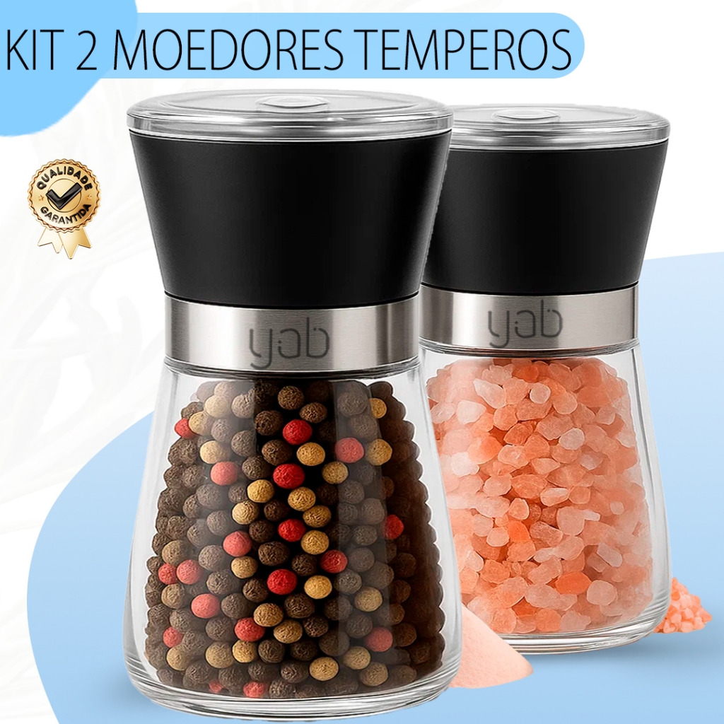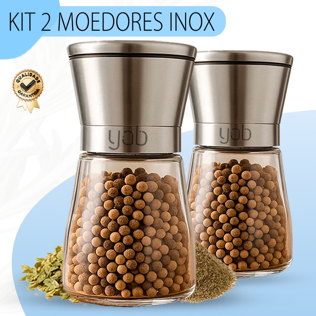 Kit 2 ou 1 Moedor De Pimenta Manual Tempero Sal Vidro Inox Yab Aço Escovado ou Preto