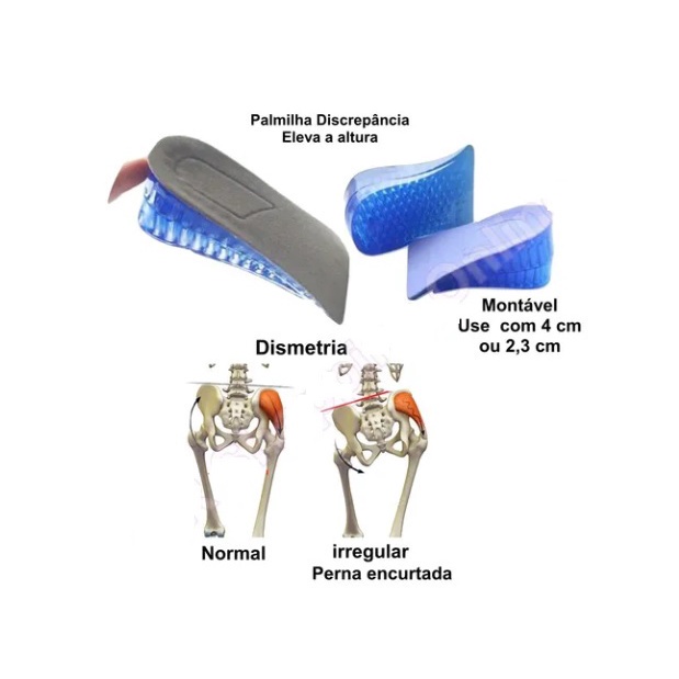 Par Palmilha Elevação Silicone 2 Camadas 3cm Elevação